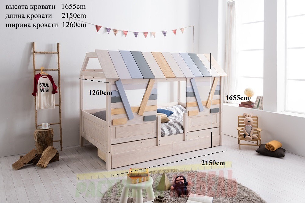 - Кровать-домик для игр (наличие съёмных элементов крыши и панелей с окнами)