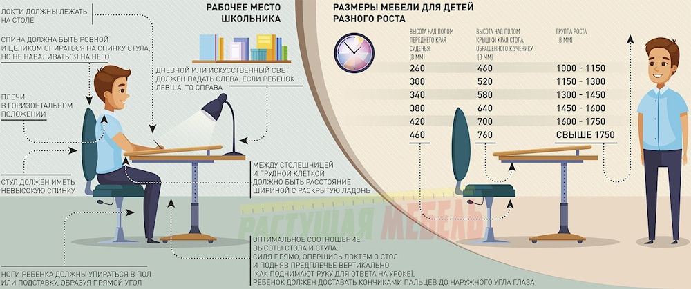 Поэтому какие будут стол и стул для ученика, имеет важное значение. Нарушение осанки в большинстве случаев проявляется из-за того, что мебель не соответствует росту ребенка.
