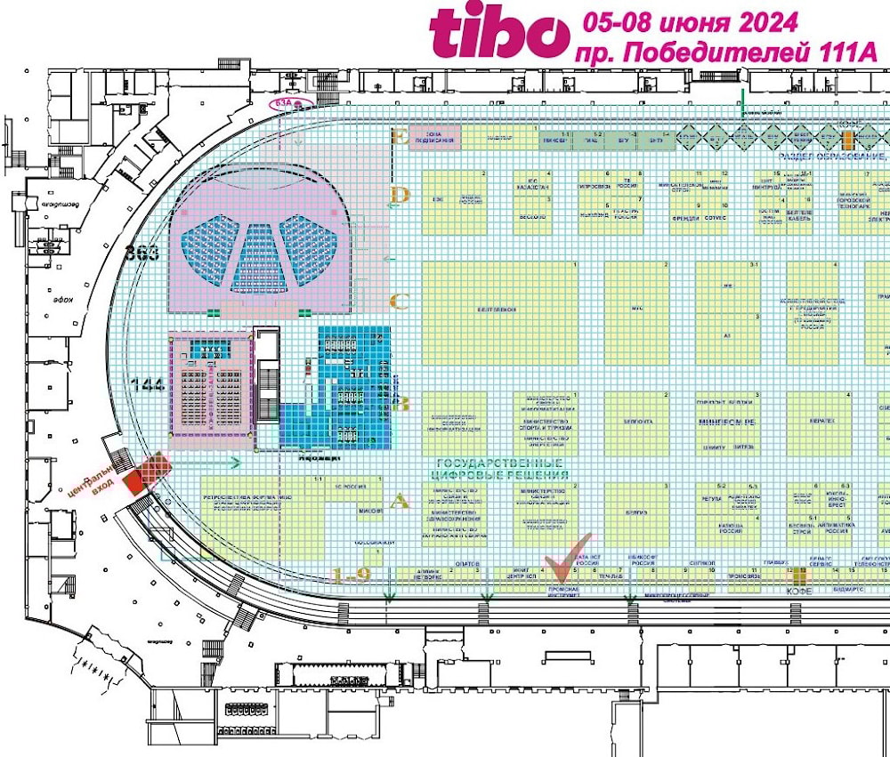 Место проведения выставки ТИБО-2024. Наш стенд ПЯТЫЙ от центрального входа в крайнем ряду напротив стенда Министерства транспорта с надписью "WWW.ERGOSMART.BY":