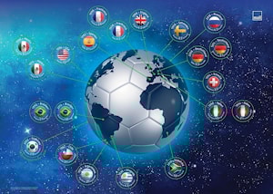 - Football around the globe! Фанатам футбола придется по вкусу накладка на стол «Кубок мира» с обзором всех чемпионов мира и финальных игр по футболу.