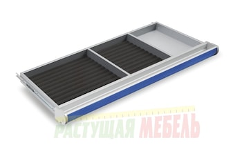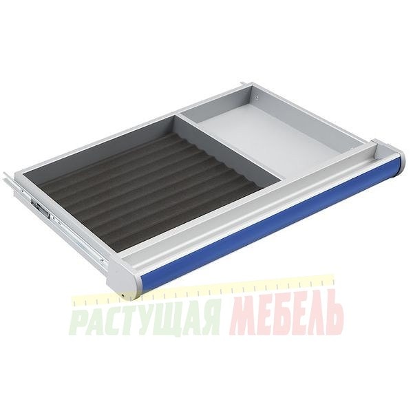 ![]() | Выдвижной ящик расположен во всю ширину стола. Разделен на 2 отделения. К одному из них прилагается специальный вкладыш из плотного поролона, который препятствует скольжению мелких предметов внутри ящика. |
