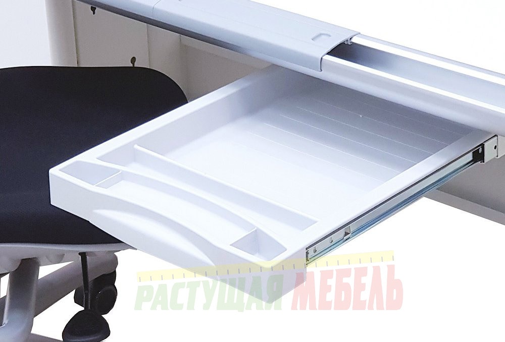 ![]() | Вы можете доукомплектовать свое рабочее место светодиодной лампой СOMF-LIGHT, подкатными тумбами, а также подобрать себе удобный стул, накладки на стол и увеличить рабочее пространство при помощи многоуровневых полок. |