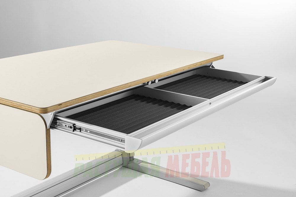 ![]() | Выдвижной ящик с встроенным пеналом на всю ширину стола разделен на 2 отделения. К каждому из них прилагается специальный вкладыш из плотного поролона, который препятствует скольжению мелких предметов внутри ящика. Докупается отдельно. |