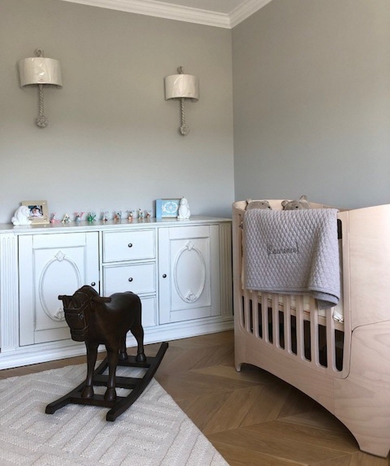 Деревянную кроватку мы купили датского производителя Leander. Она также трансформируемая. Благодаря этому свойству, мы сможем ее использовать с рождения и до 14 лет, как заверяет производитель.