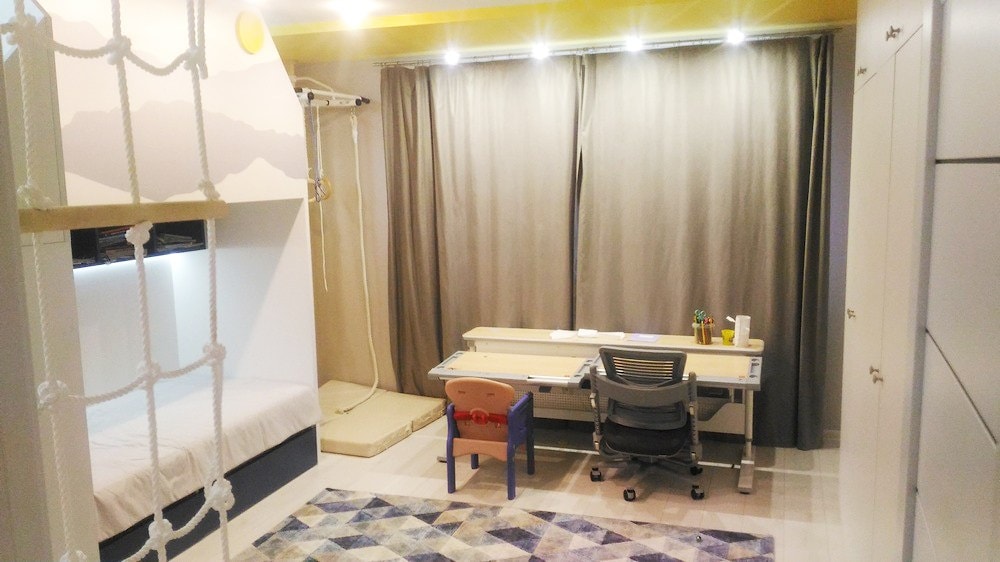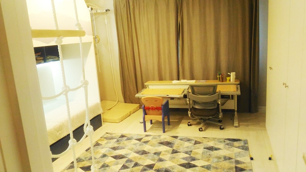 ![]() | Игровую на верхнем ярусе дети обожают, конструируют из кубиков, а еще там можно прятаться от нас или наблюдать. |