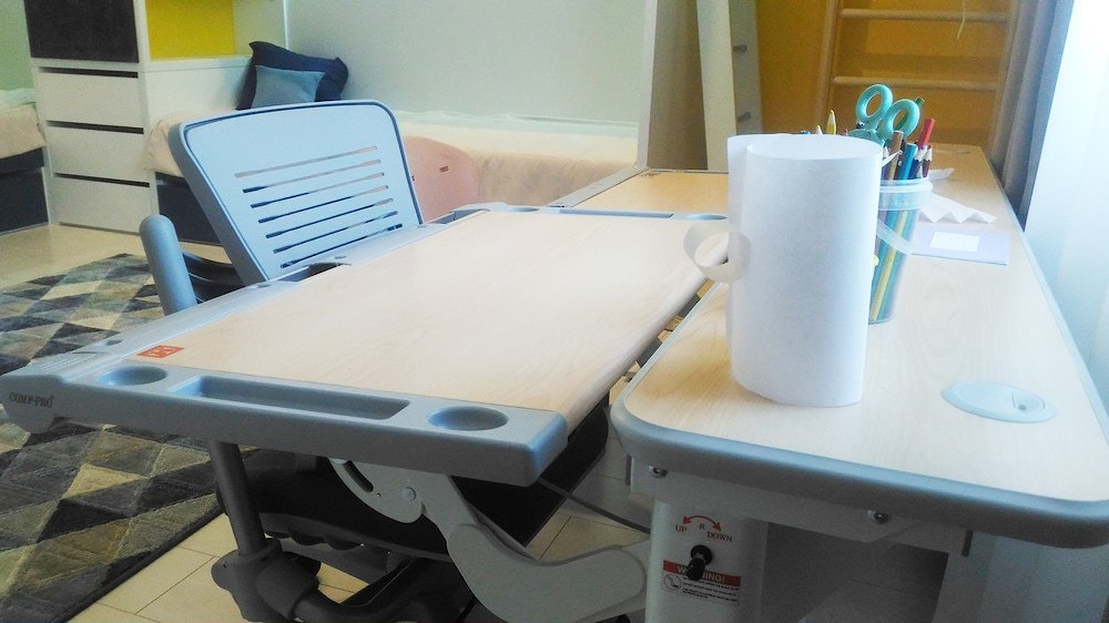 Детскую парту COMF-PRO M13 установили возле окна, детям всегда светло в дневное время суток. На ней дети уже и красками рисовали, и лепили из пластилина – все легко отмывается.