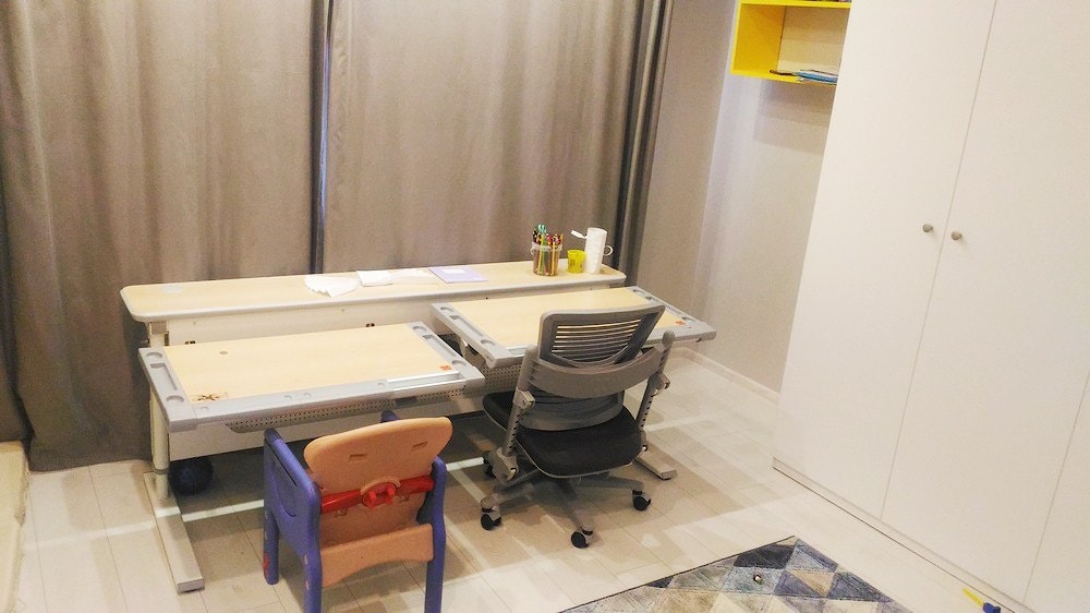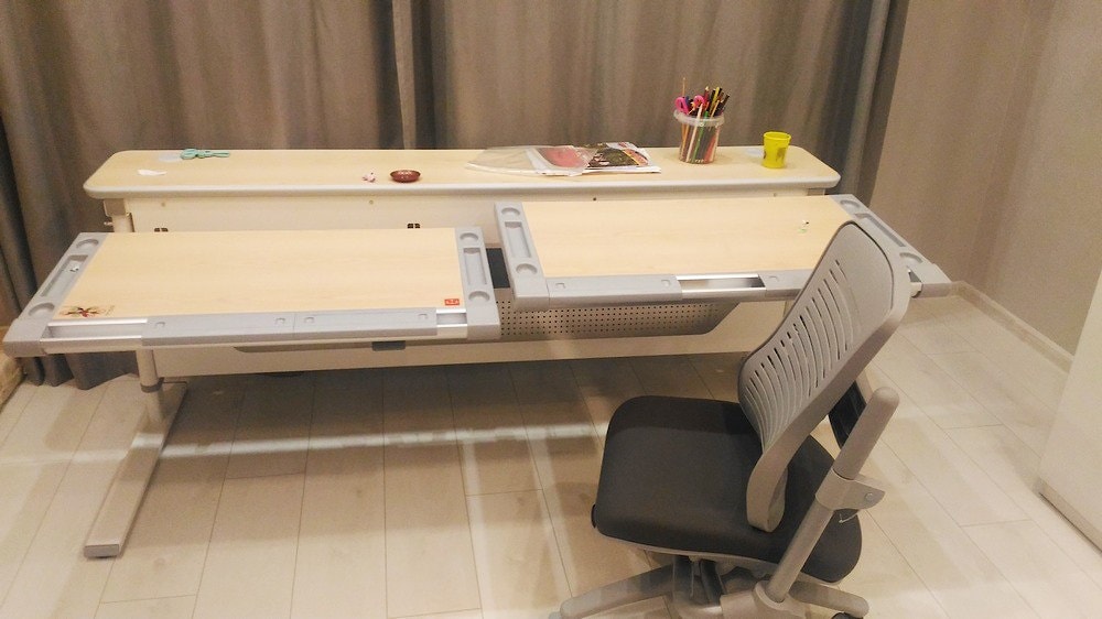 "Гуляя по ТЦ «Тивали», уже давно заприметила магазин «Растущая мебель». И вот весной этого года я решила зайти. Дочка в этом году идет в первый класс. А ранее, в апреле, мы уже начали ремонт зала, переоборудовав его в детскую комнату площадью 20м² для двоих разнополых и разновозрастных детей. Дочке 6,5 лет, сыну 4 годика. Увидев в салоне растущую парту для двоих COMF-PRO М13, я сразу в нее влюбилась. И дочке удобно делать уроки, и братик может рядом рисовать на полноценном рабочем месте. Все заняты, все при деле - и все это за одним столом родные брат и сестра. Кроме того, нам, родителям, также удобно сидеть рядом и помогать делать уроки ребенку.