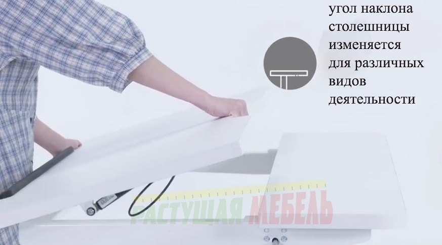 ![]() | Угол наклона регулируется от 0° до 30°. Наклонная поверхность стола позволяет верно настроить угол, необходимый при чтении, рисовании, письме и других видах работ. |