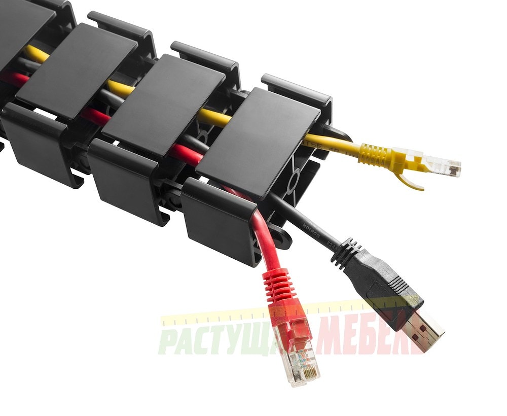 ![]() | Кабель менеджмент Ergo Cabel может быть черного, белого и серебристого цвета. |