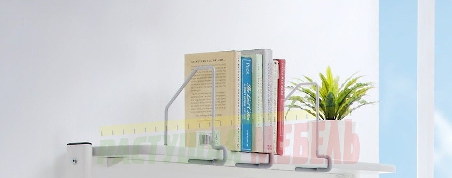 Верхний ярус - это полка со сдвижными держателями для книг. На верхнем ярусе легко разместятся высокие папки для деловых записей, книги, тетрадки и мини-блокноты.