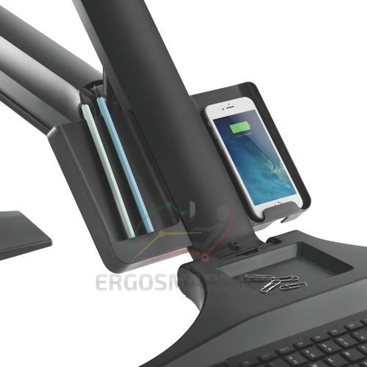 Настольный кронштейн-станция Workstation Black с подставкой для клавиатуры в интерьере: