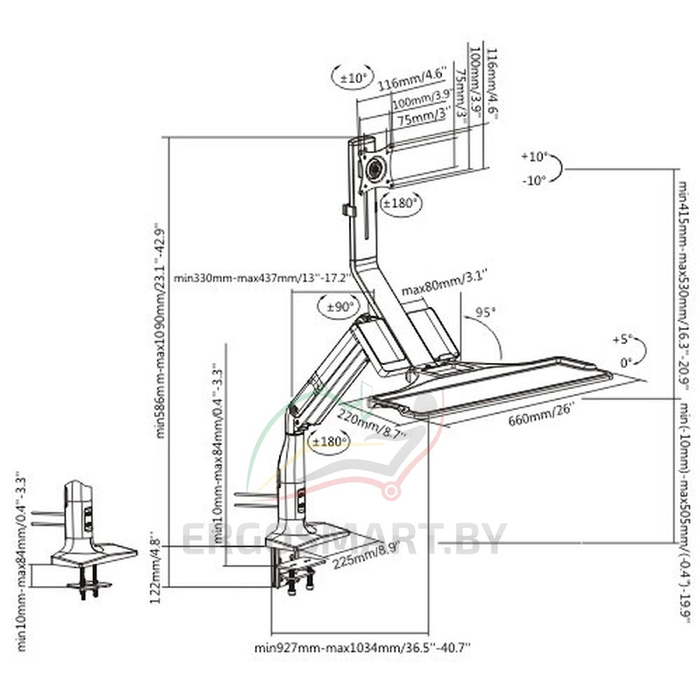![]() | Размеры кронштейна для монитора Workstation Black. |