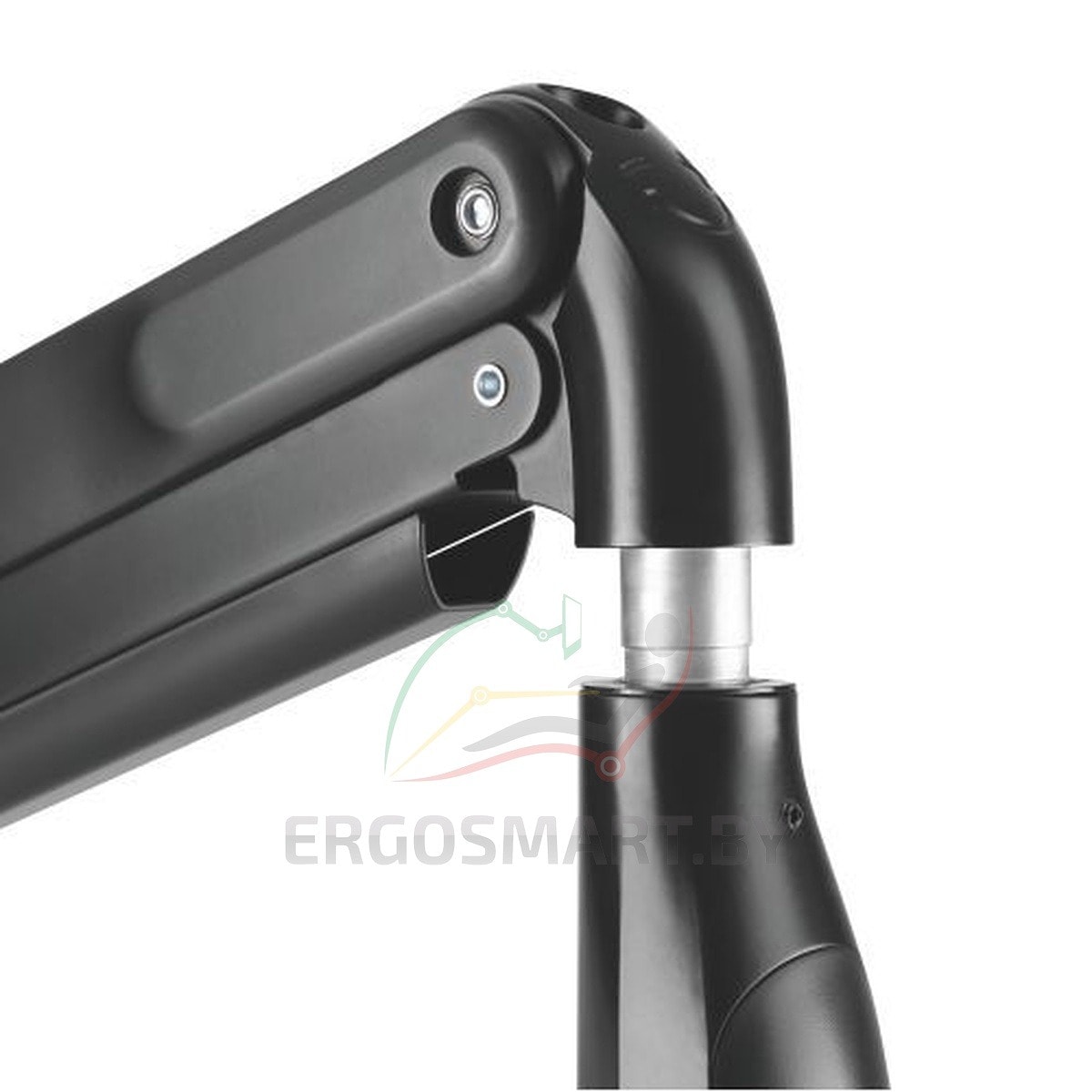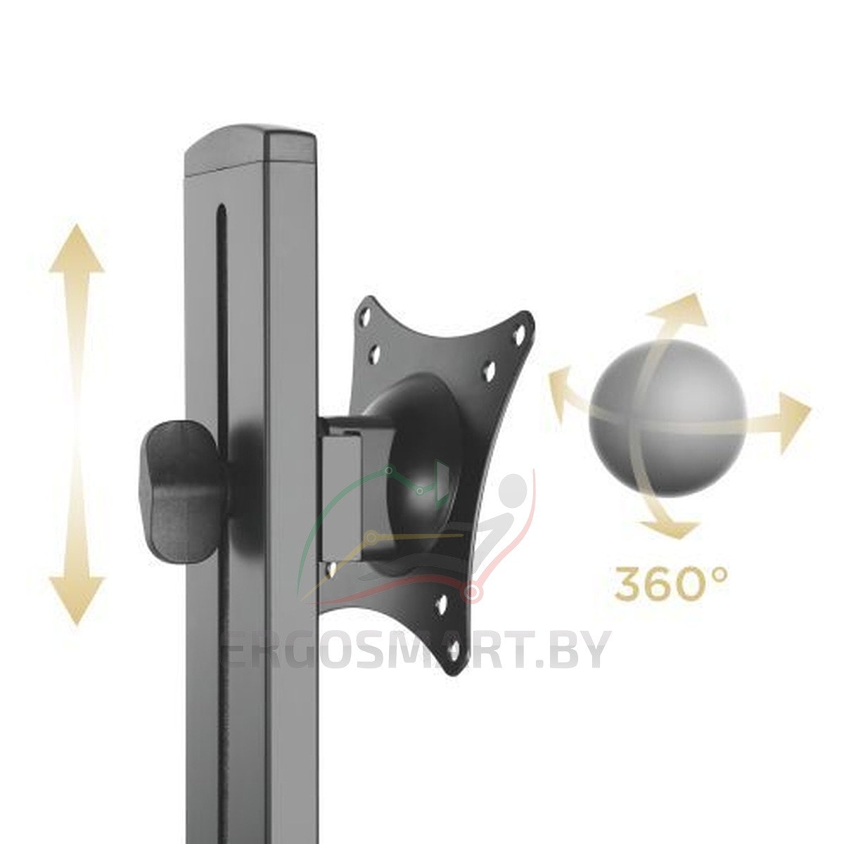- Верхние регулировки развернут экран на 360° благодаря шаровому механизму, позволят опустить-поднять на нужную высоту и отрегулировать угол наклона .