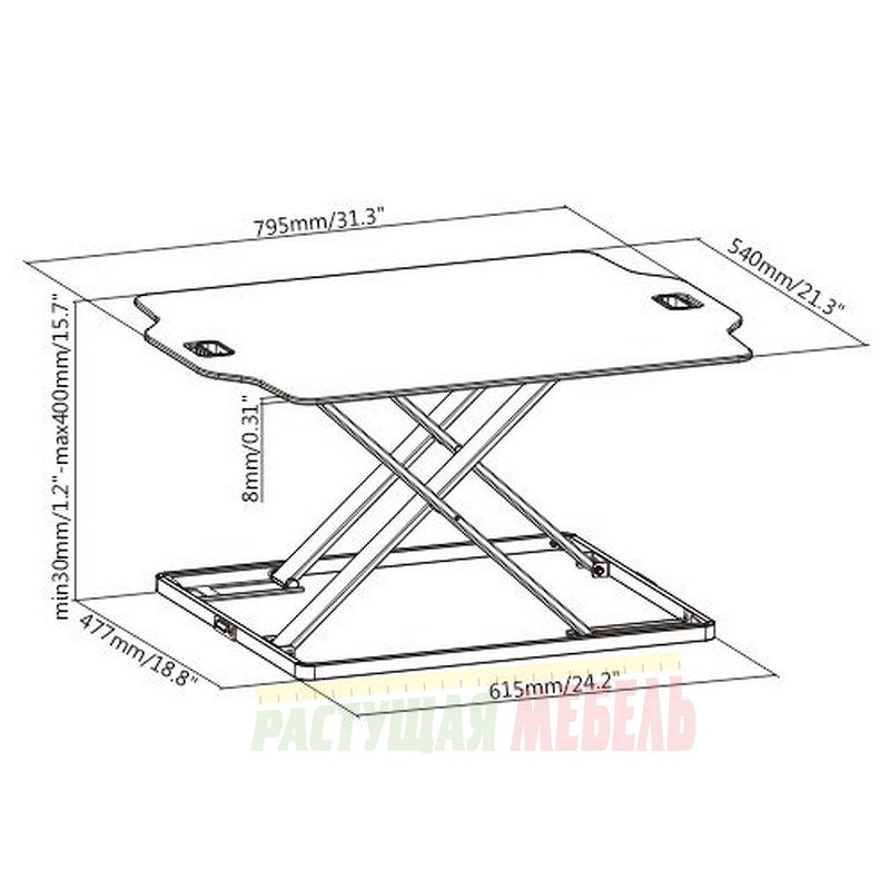 ![]() | Размеры подставки под компьютер для работы сидя-стоя Itara |