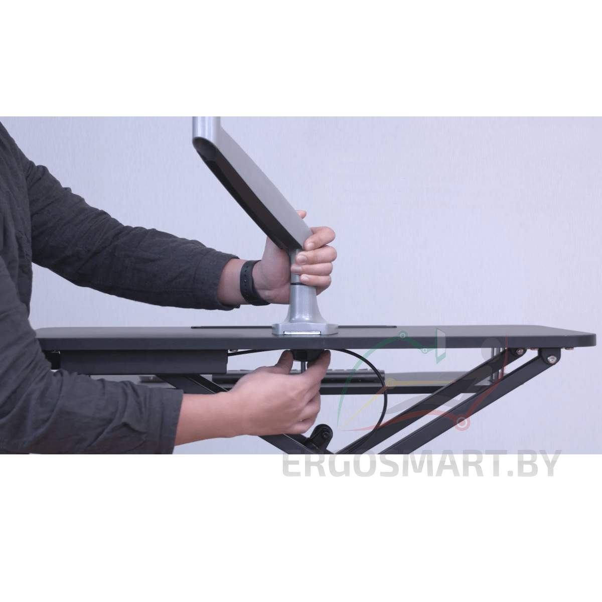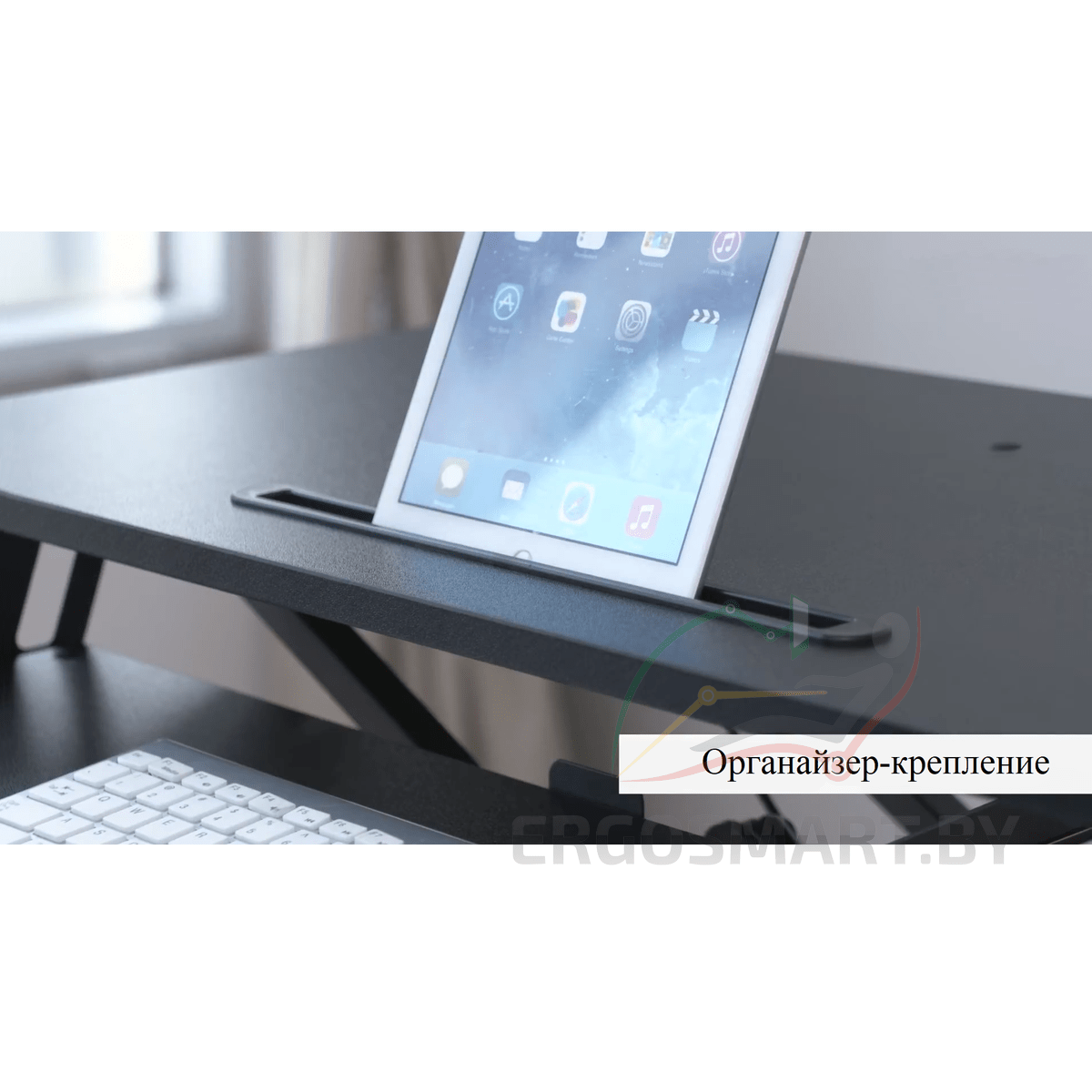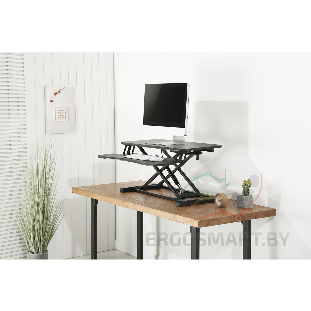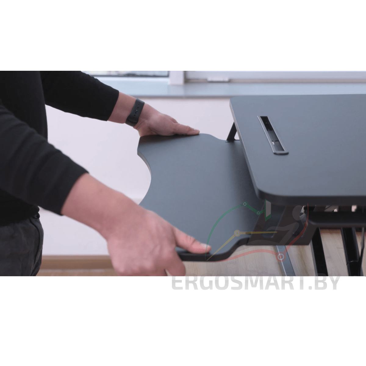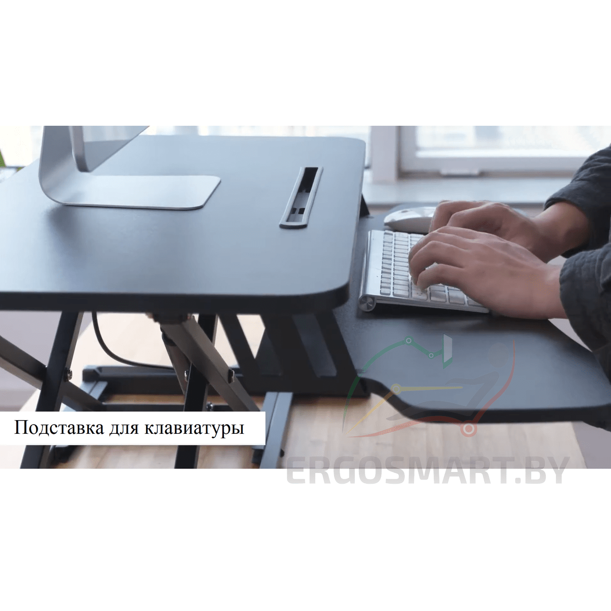 Универсальное рабочее место для работы сидя-стоя Taigette поможет минимизировать все негативные факторы сидячей работы. Подходит для людей, предпочитающих работать за стационарным компьютером (здесь есть специальное отделение для размещения клавиатуры). Для использования ноутбука более удобный вариант - платформа Callisto.