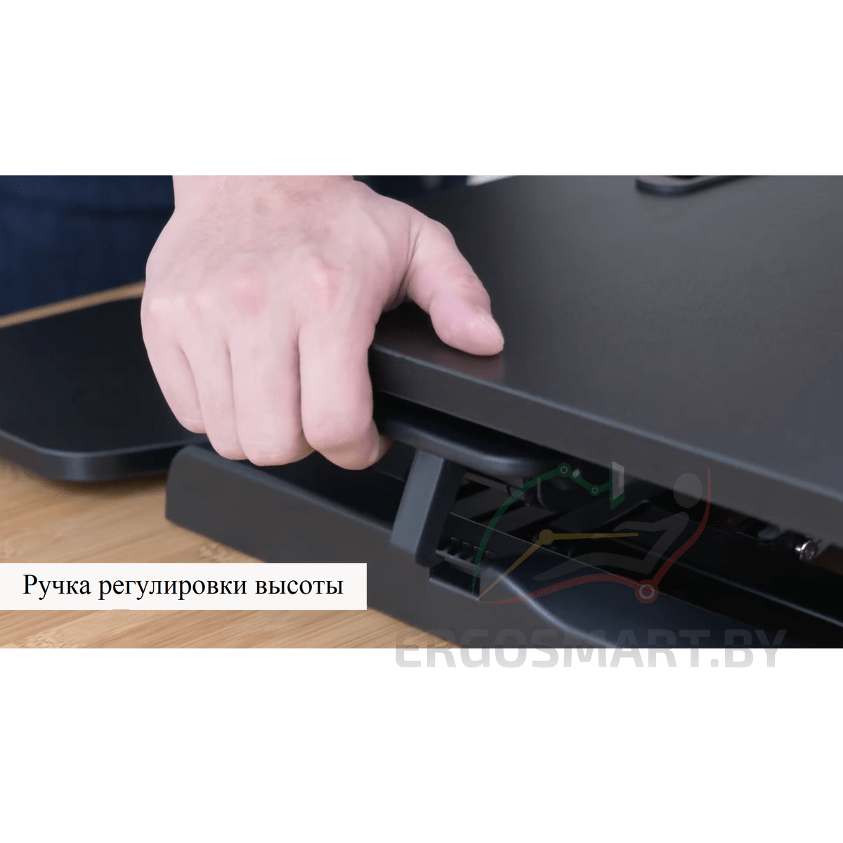 Эргономичная ручка легко изменит высоту расположения подставки для работы стоя под ваш рост. Чередование работы "сидя" и "стоя" поможет избежать проблем со здоровьем. Изменяя положение подставки Taigette на разный уровень, вы снимаете напряжение с мышц ног, рук и позвоночника.