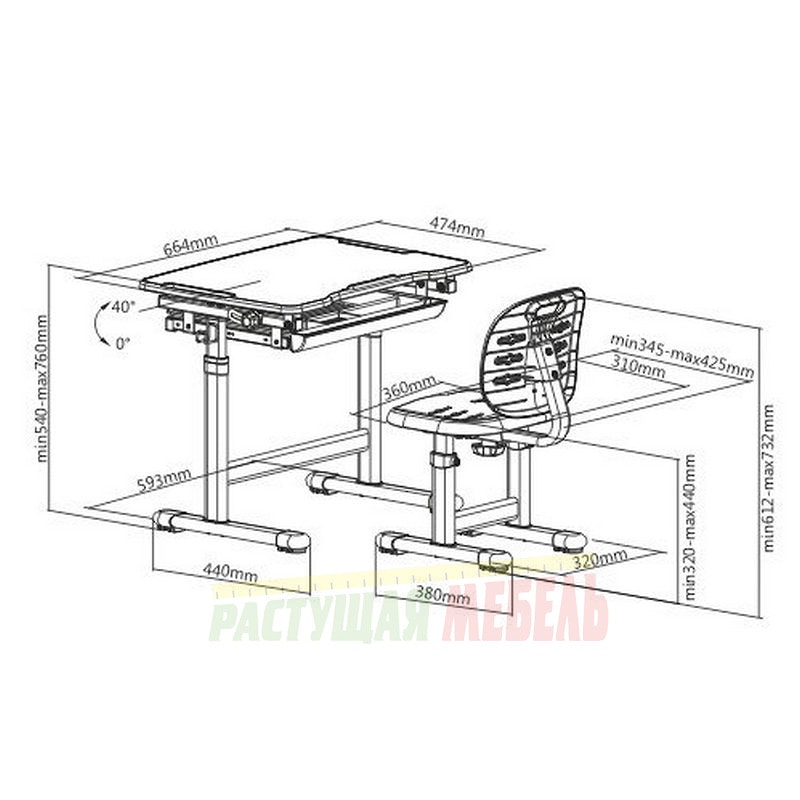 | Механизм регулировки наклона столешницы | бесступенчатый от 0° до 40° |