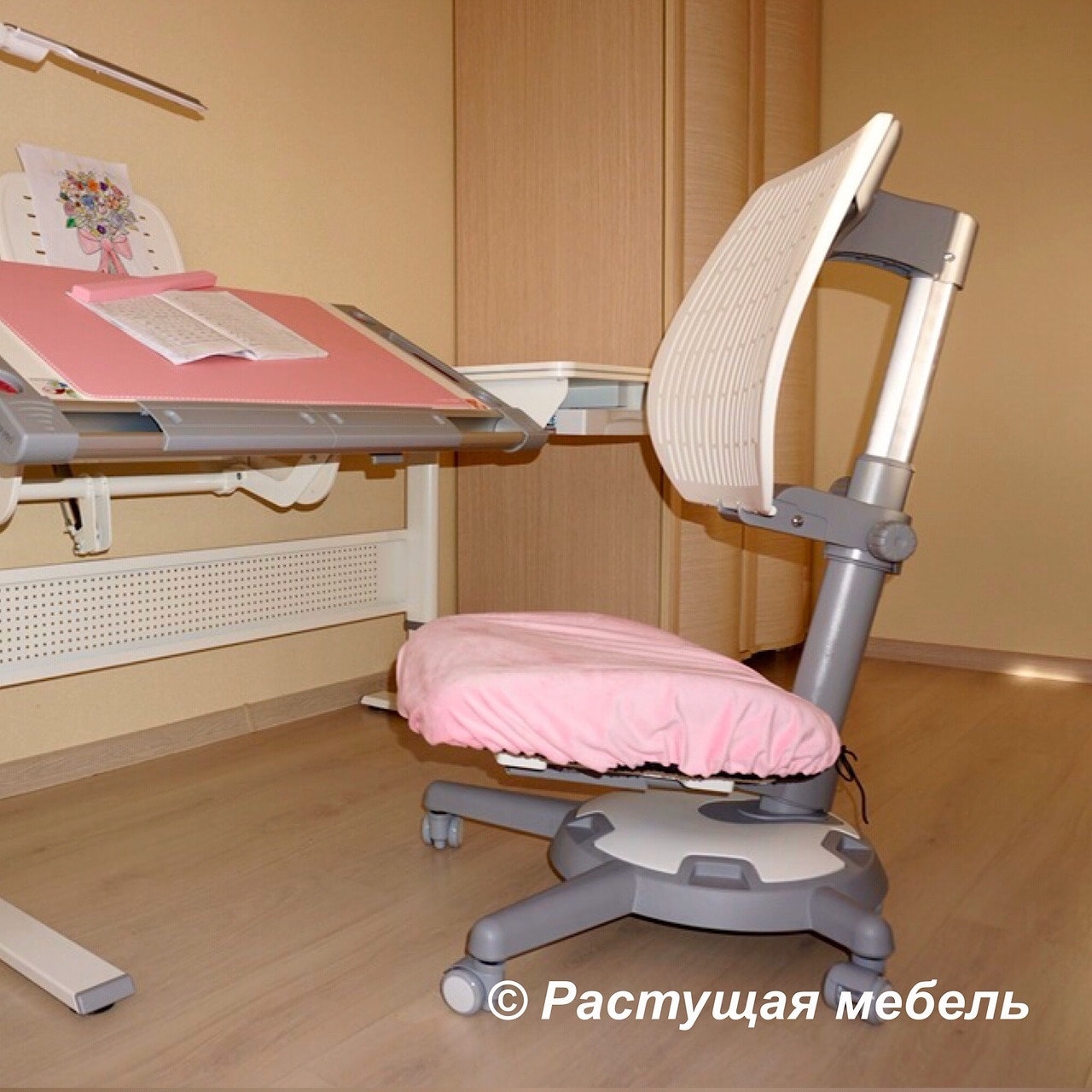 Также под интерьер комнаты девочке подобрали розовый сменный чехол для стула COMF-PRO UltraBack и удобное настольное покрытие COMF-PRO Desk Mat с магнитным держателем розового оттенка. Покрытие очень качественное, листы по нему не скользят, дополнительно можно зафиксировать тетрадку магнитным держателем в любом удобном положении.