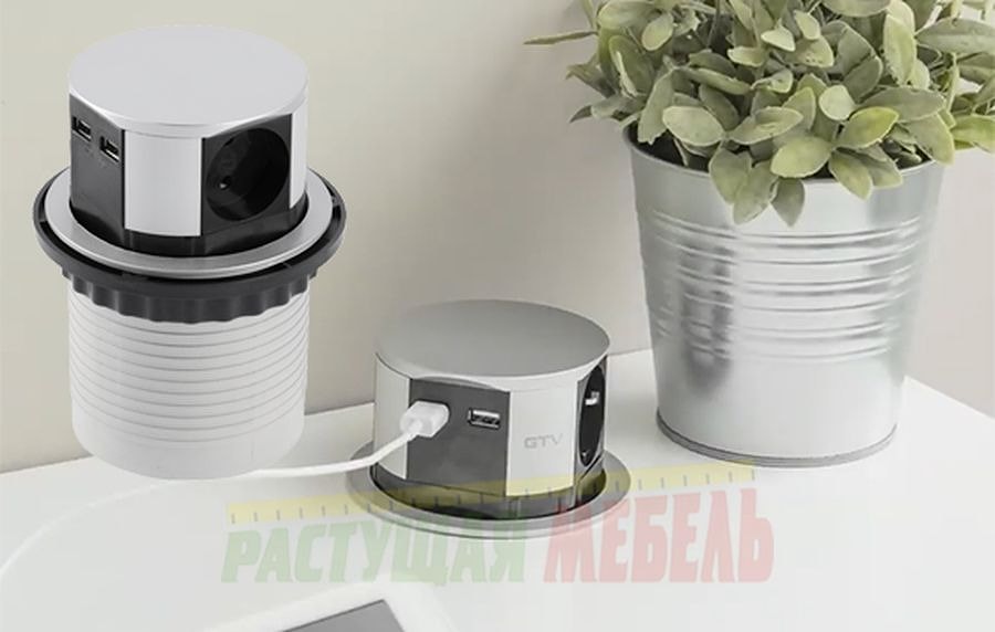 В обычном положении встраиваемые розетки спрятаны в столе, при необходимости вы легким нажатием на удлинитель запускаете механизм подъема. При окончании использования, таким же легким нажатием возвращаете его на место.