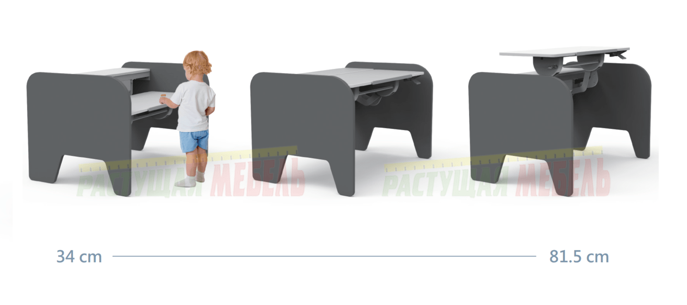 Регулировка столешницы по высоте от 34 см до 81,5 см, подходит для детей в возрасте от 3 лет!