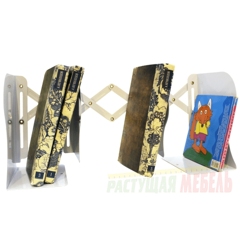 Изюминка заключается в изменении ширины подставки с помощью механизма в виде "гармошки". Вы сможете настраивать держатель под необходимое количество книг. Внутри также имеются дополнительные деления, которые позволят разделить литературу по темам .