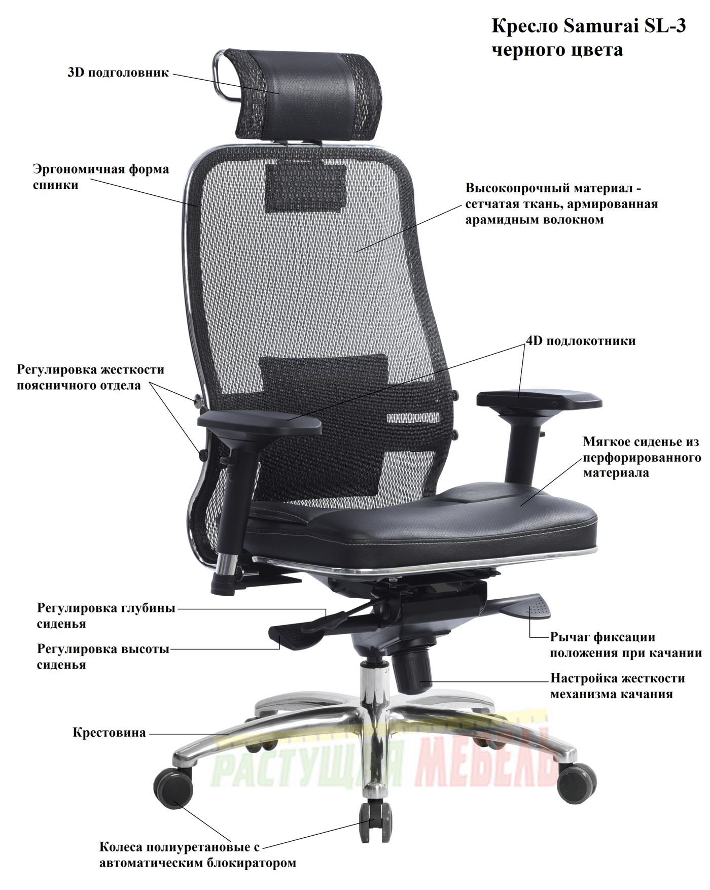 ![]() | Размеры кресла Metta Samurai SL-3. |
