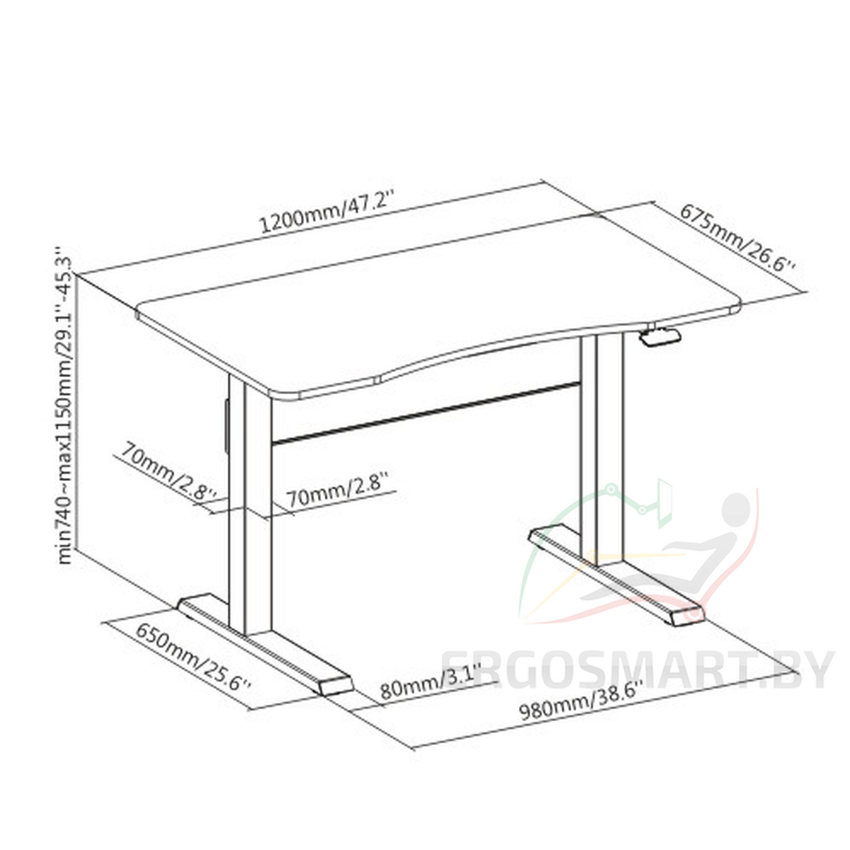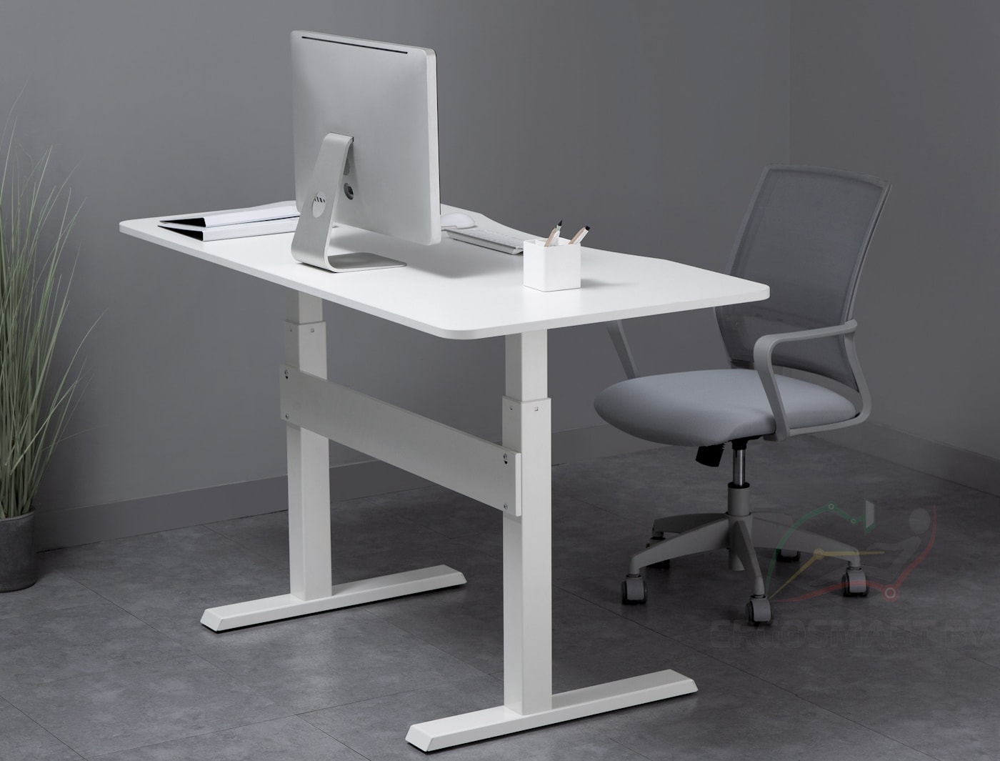 Регулировка по высоте не требует больших усилий, нужно просто нажать на кнопку и стол начнет подниматься, благодаря установленным в ногах газовым пружинам. А для того, чтобы опустить достаточно небольшого давления на столешницу и стол начнет опускаться.