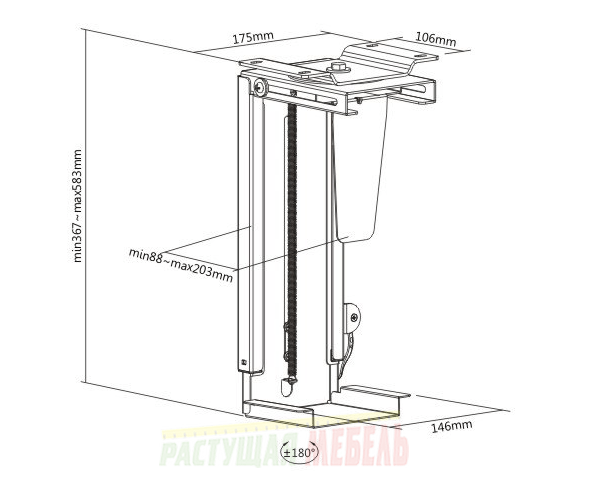 Альтернативная модель со слайдером (функция движения вперед-назад) - подвесной держатель системного блока Unique.