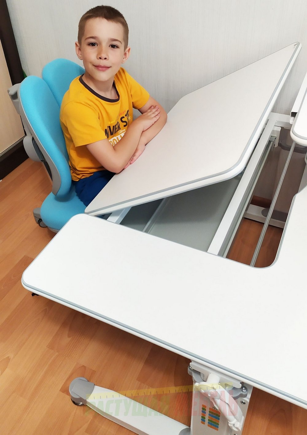 У стола Rifforma Comfort-100 есть выдвижной ящик, подставка для книг и даже полка. Причем, часть столешницы регулируется по углу наклона. Имеется и регулировка высоты! Именно за это и полюбила парту!