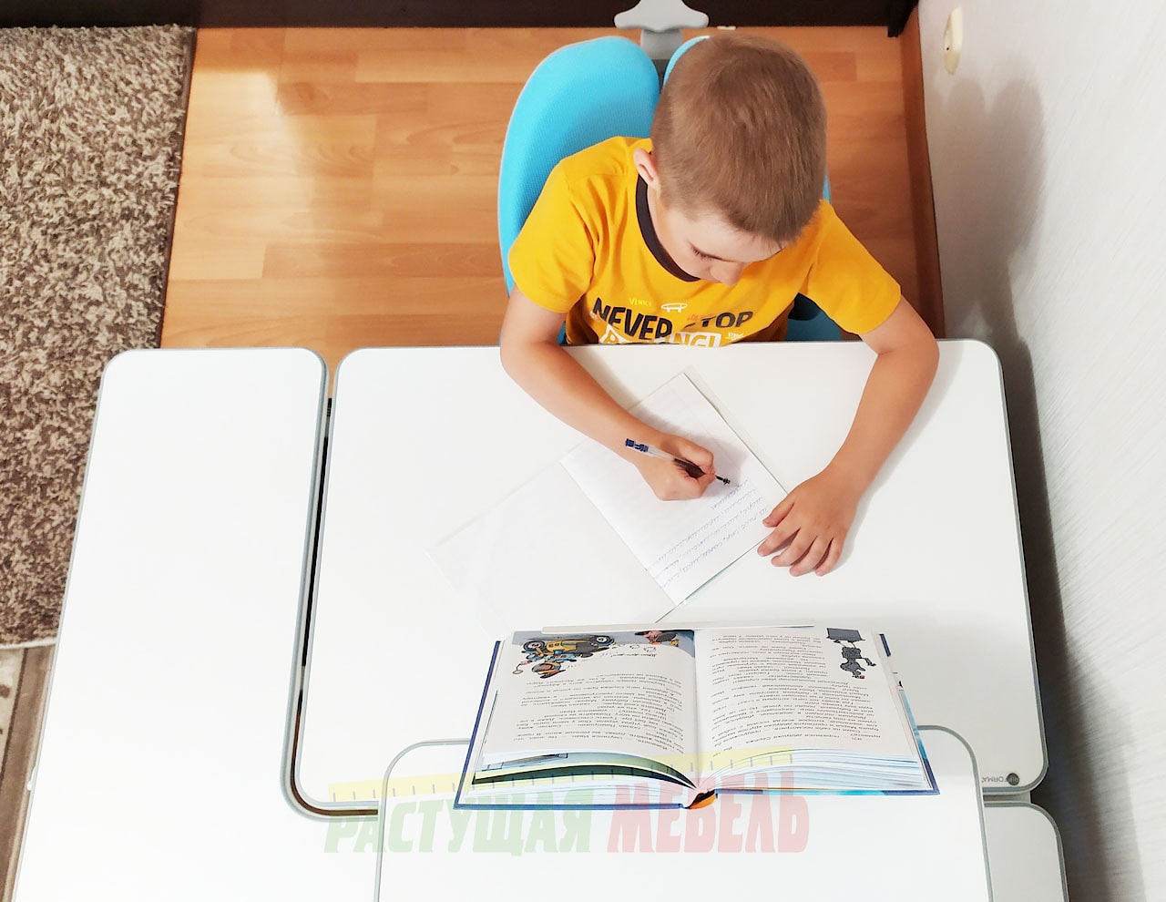 Мы купили парту Rifforma Comfort-100. Она растет вместе с ребенком. Впрочем, сидеть за ней можно даже взрослому (не выше 180 см). Поэтому, я надеюсь, такой мебели хватит сыну от первого до последнее класса! А может и дольше.