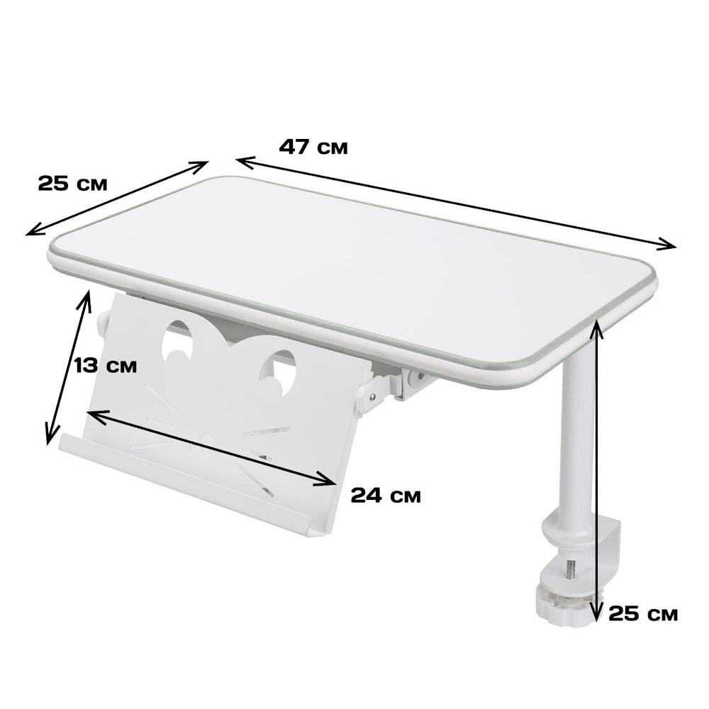 ![]() | Мультифункциональная полка-приставка легко крепится при помощи струбцины ко всем регулируемым столам Растущая мебель , а также подойдёт к столам других производителей с толщиной столешницы до 16 мм. |