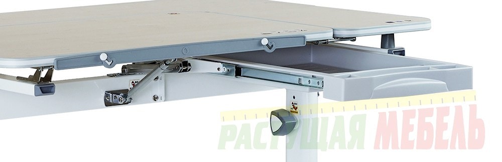 ![]() | Под столешницей расположен удобный выдвижной ящик-пенал для ручек, карандашей, стирок и точилки. Внешний край наклонной столешницы оснащен линейкой - барьером против соскальзывания. Барьер можно вручную поднимать (при наклонной столешнице) и опускать (в горизонтальном положении столешницы). |