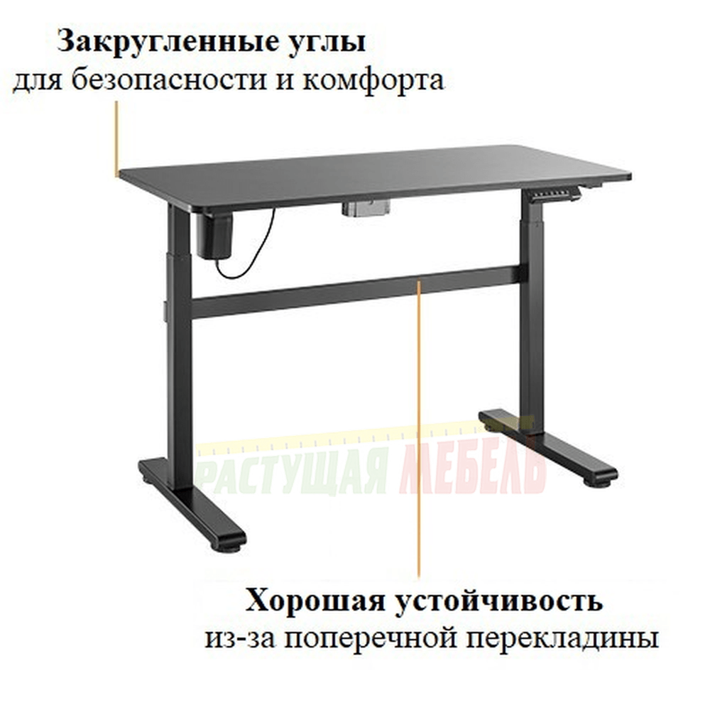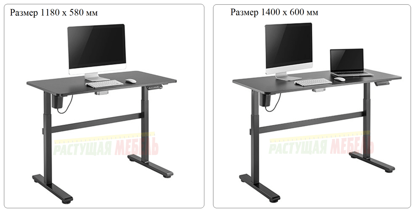 Регулируемый по высоте стол Electric Full Desk - поставляется в комплекте со столешницей черного цвета, двух типоразмеров: