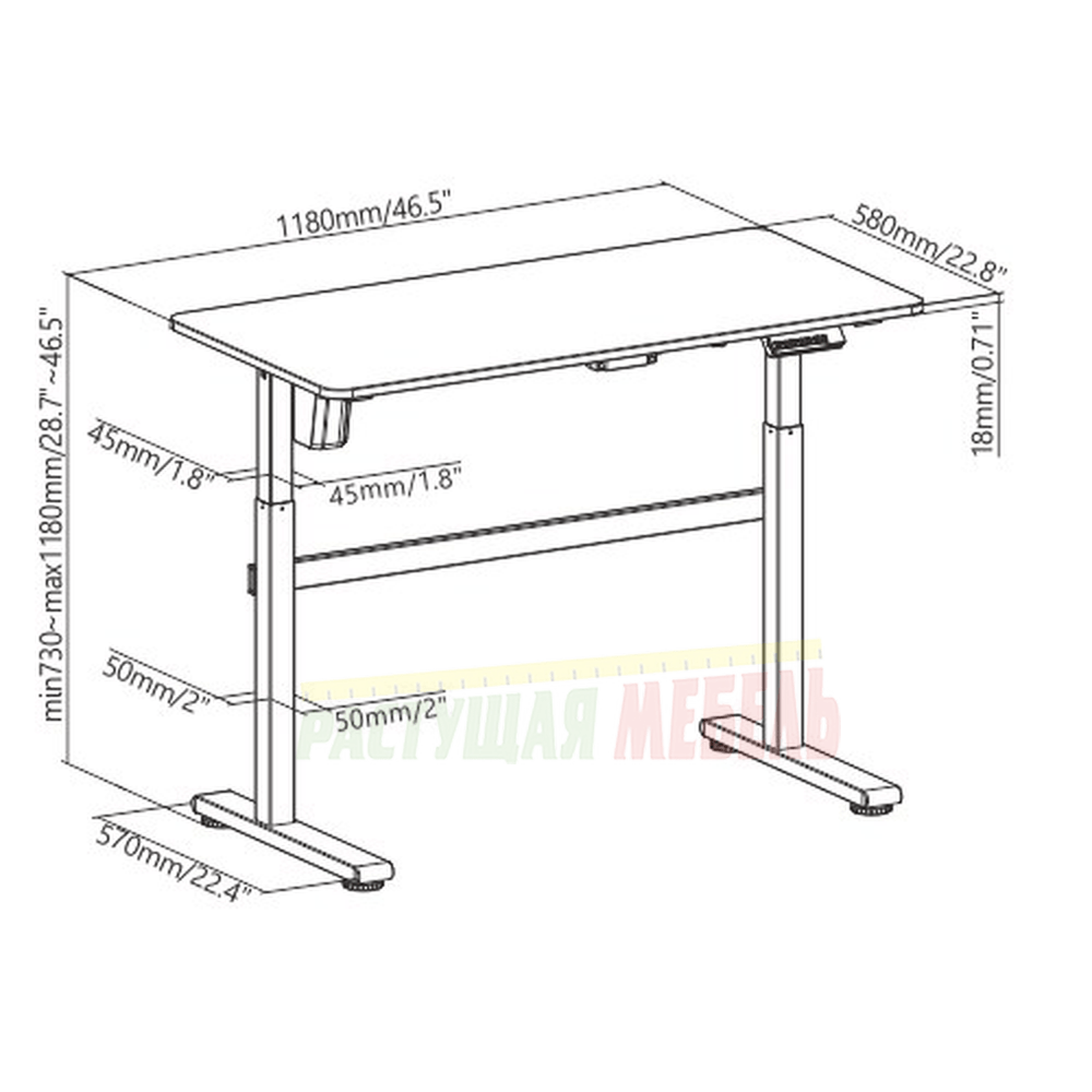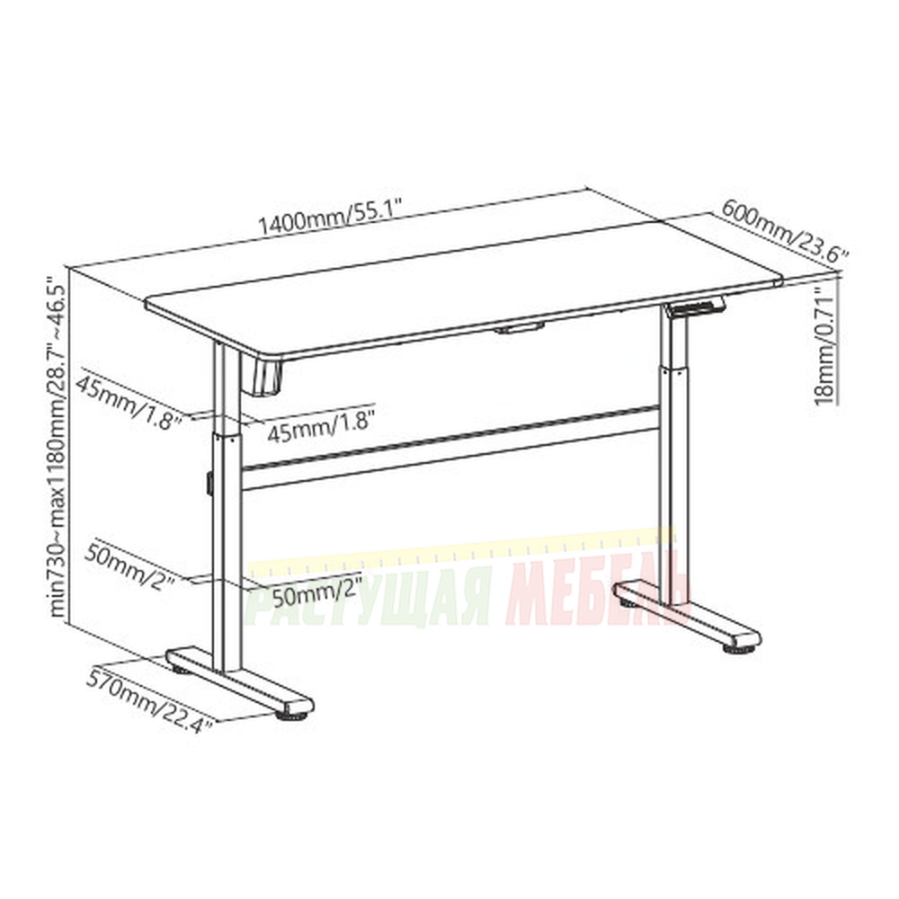Электрический стол оснащен одним мотором и регулируется по высоте от 730 до 1180 мм.
