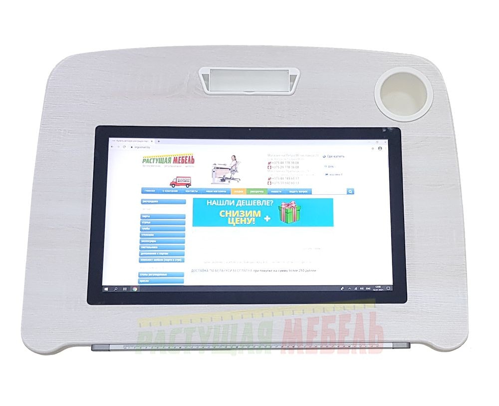![]() | Столешница парты помимо сенсорного монитора имеет встроенные отверстия по центру и сбоку - для хранения канцелярских принадлежностей. Также предусмотрен барьер против скольжения, который предотвратит падение вещей при наклоне столешницы. |
