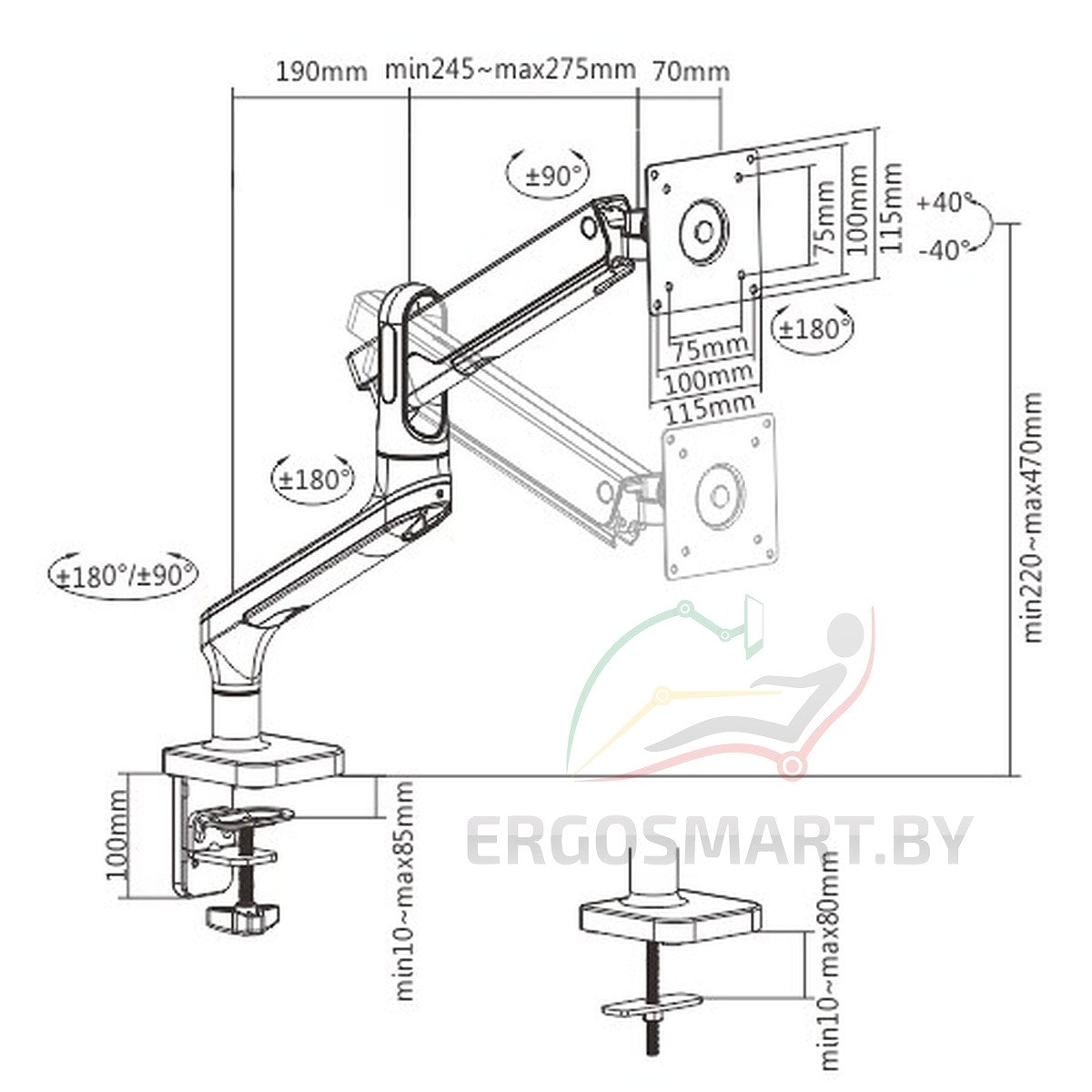![]() | Удобная регулировка во всех сочленениях. В основании можно установить ограничения поворота на 180° или 360°, что незаменимо при работе рядом с задней стенкой для исключения механических повреждений кронштейна. |