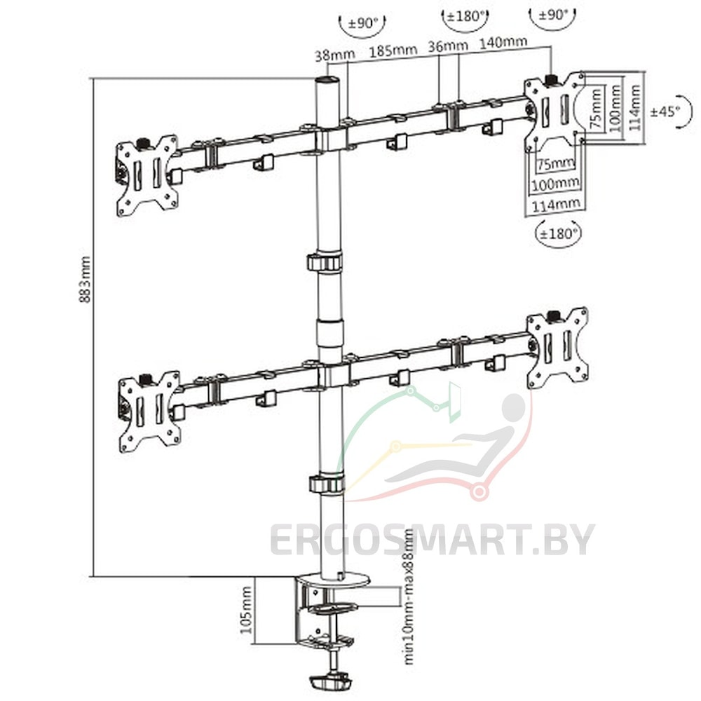 Основные характеристики кронштейна для 4-х мониторов Double Twin: