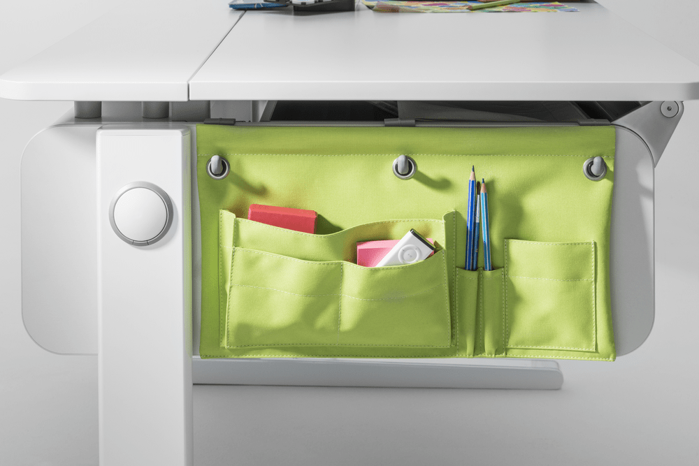 | Линейка Champion может куда больше, чем просто помогать ребёнку при рисовании линий. В неё встроен магнит, и он не даёт ей соскользнуть с наклонной поверхности стола. | В собранном состоянии она легко входит в любую сумку, и её можно взять с собой в школу. Алюминиевый фиксатор крепко держит книгу и не даёт ей скользить даже, когда стол наклонён. | Даже у школьной сумки есть своё место на столе Champion. Крючок для сумки может быть прикреплён на боковую панель стола. | Коробка с восьмью цветными лентами и кругами-заглушками для оформления ножек стола разнообразит настроение вашего ребенка |