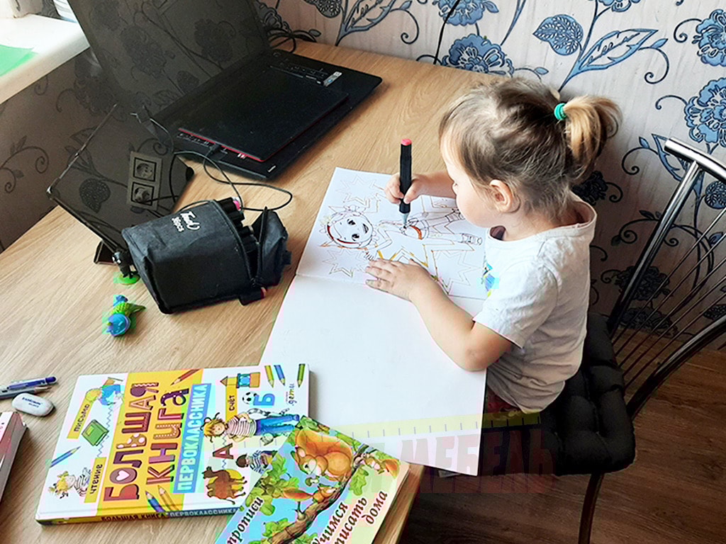 На помощь пришел магазин "Растущая мебель" в ТЦ "Тивали". Специалист-консультант выслушала нашу проблему и помогла с выбором подходящей модели. Выбор был сделан в пользу регулируемого стола Ergo Desk Pro, который позволяет работать сидя и стоя всем членам нашей семьи.