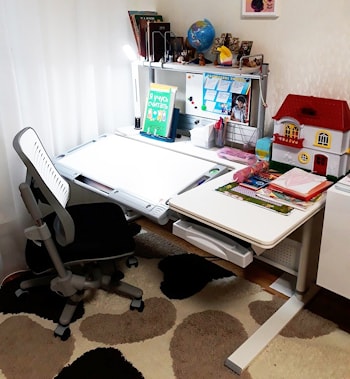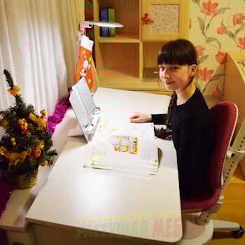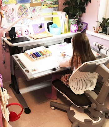 Роберт конечно же больше времени проводит за своим рабочим местом, выполняя домашние задания по письму и математике. Стефания очень любит рисовать за партой moll Joker.