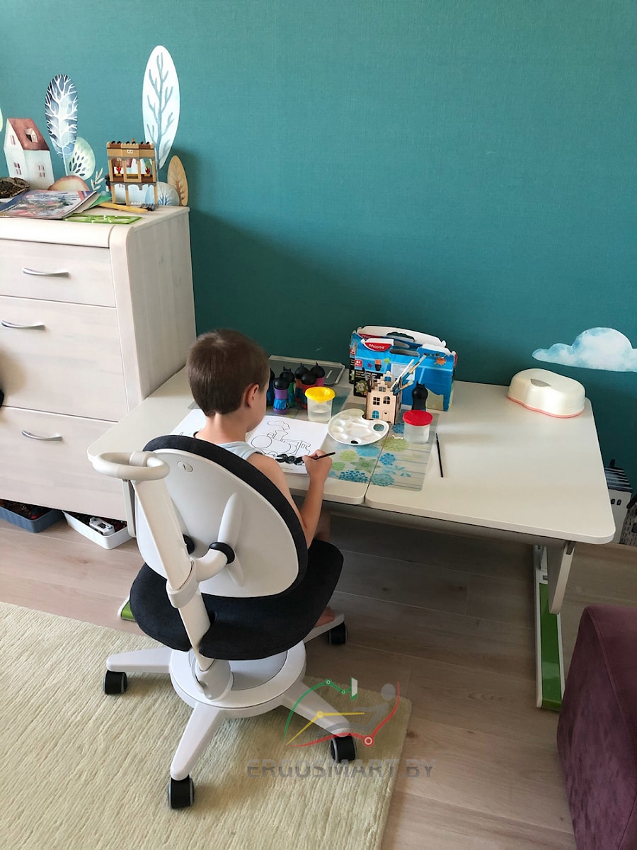 Ребенок за партой moll Champion делает все: читает, пишет, лепит, собирает конструктор и играет. Столешница большая, что позволяет свободно раскладывать все запасы письменных и других принадлежностей.