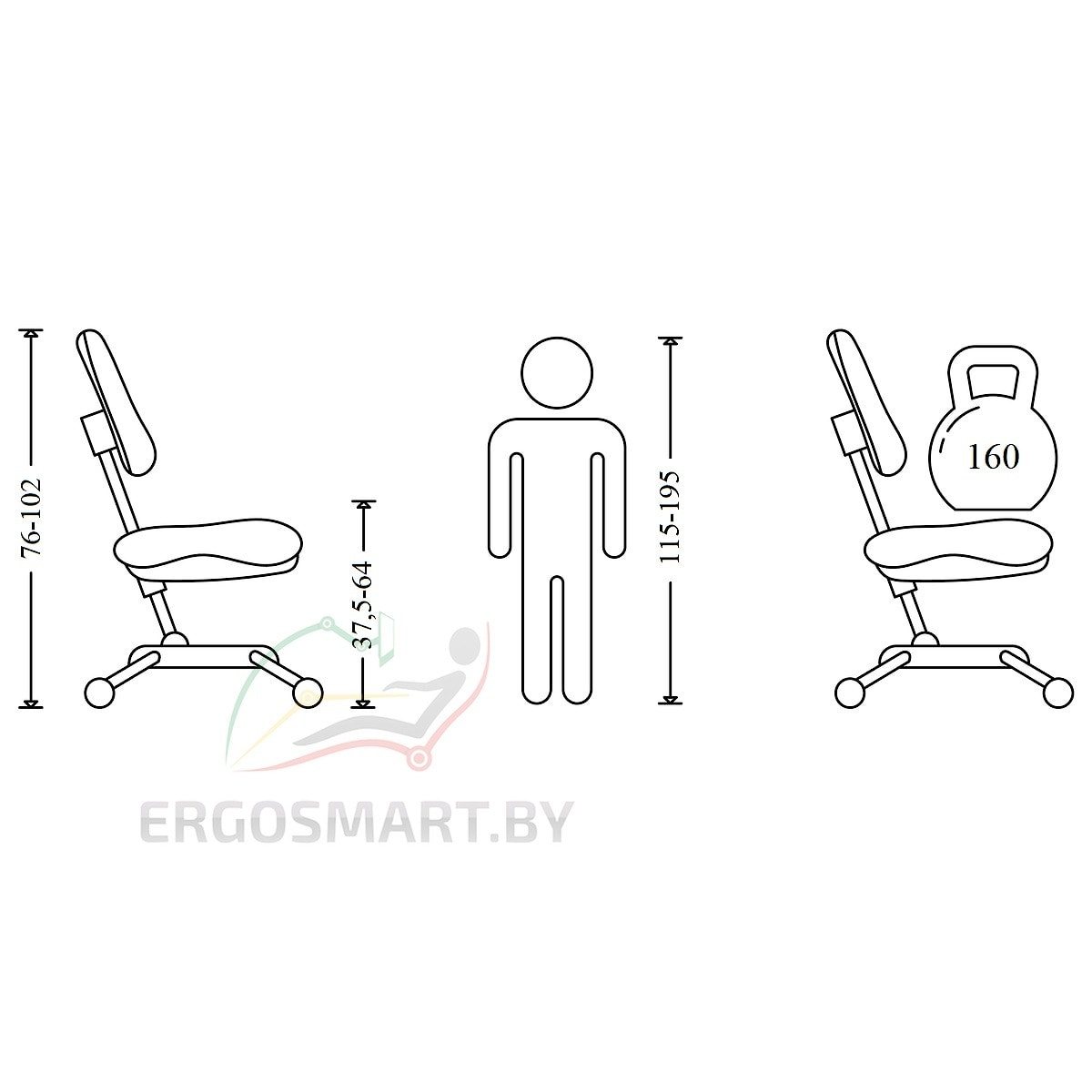 | Высота регулировки сиденья | 37,5-64 см |