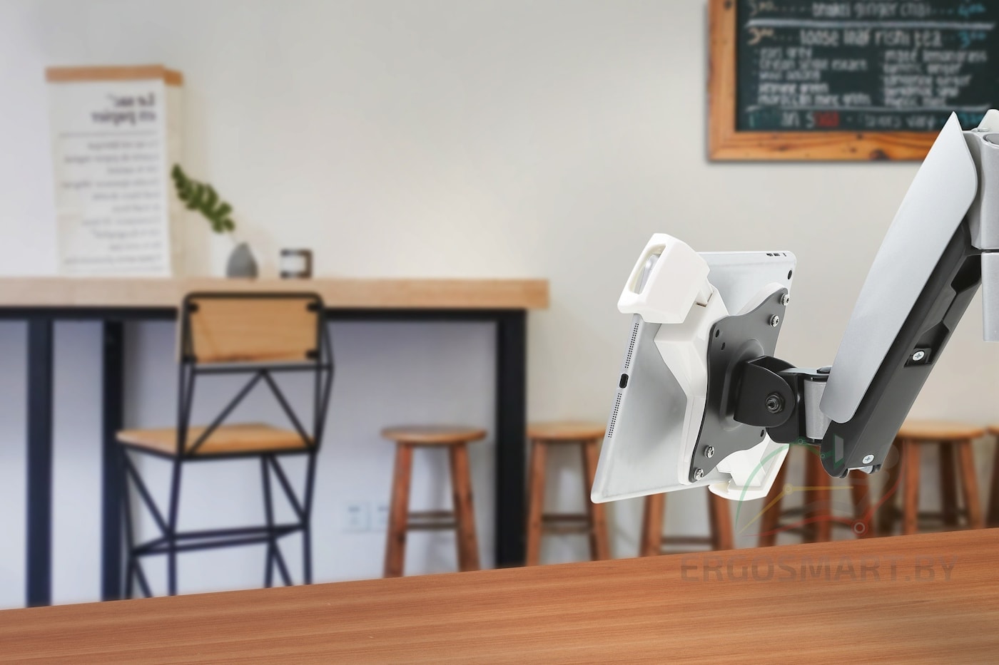 Регулируемый держатель для планшета незаменим для работы дома, в офисе и общественных заведениях - установлена защита от кражи.