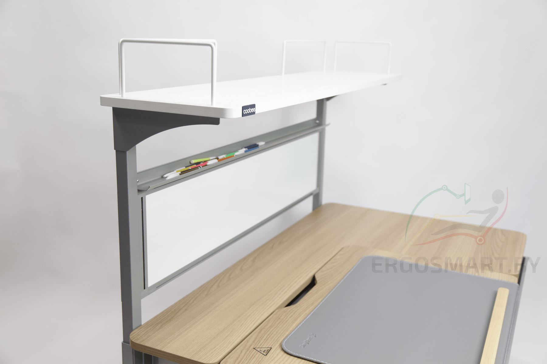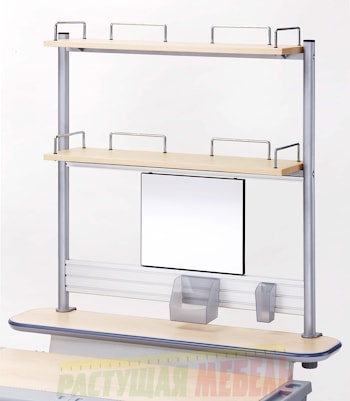 Двухуровневая надстройка CooBee-613 с магнитной доской, органайзером для канцелярских принадлежностей и полкой для книг.
