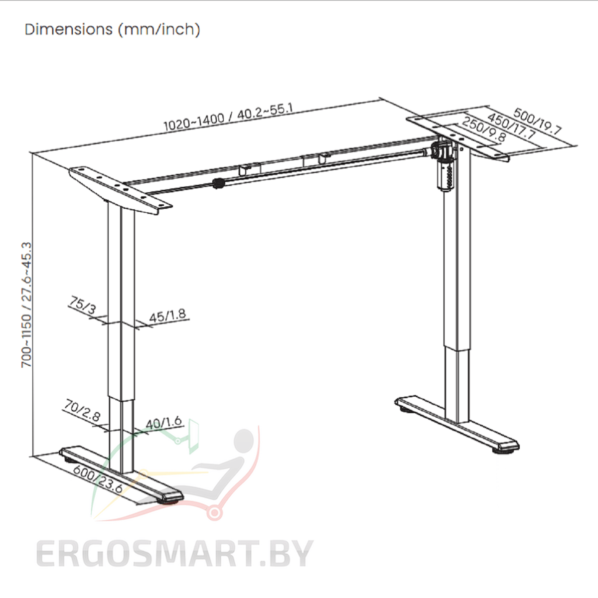 - рамы двухмоторные Unique Ergo Desk и Ergo Desk Prime с электрорегулировкой высоты (3-ступенчатая конструкция опор);