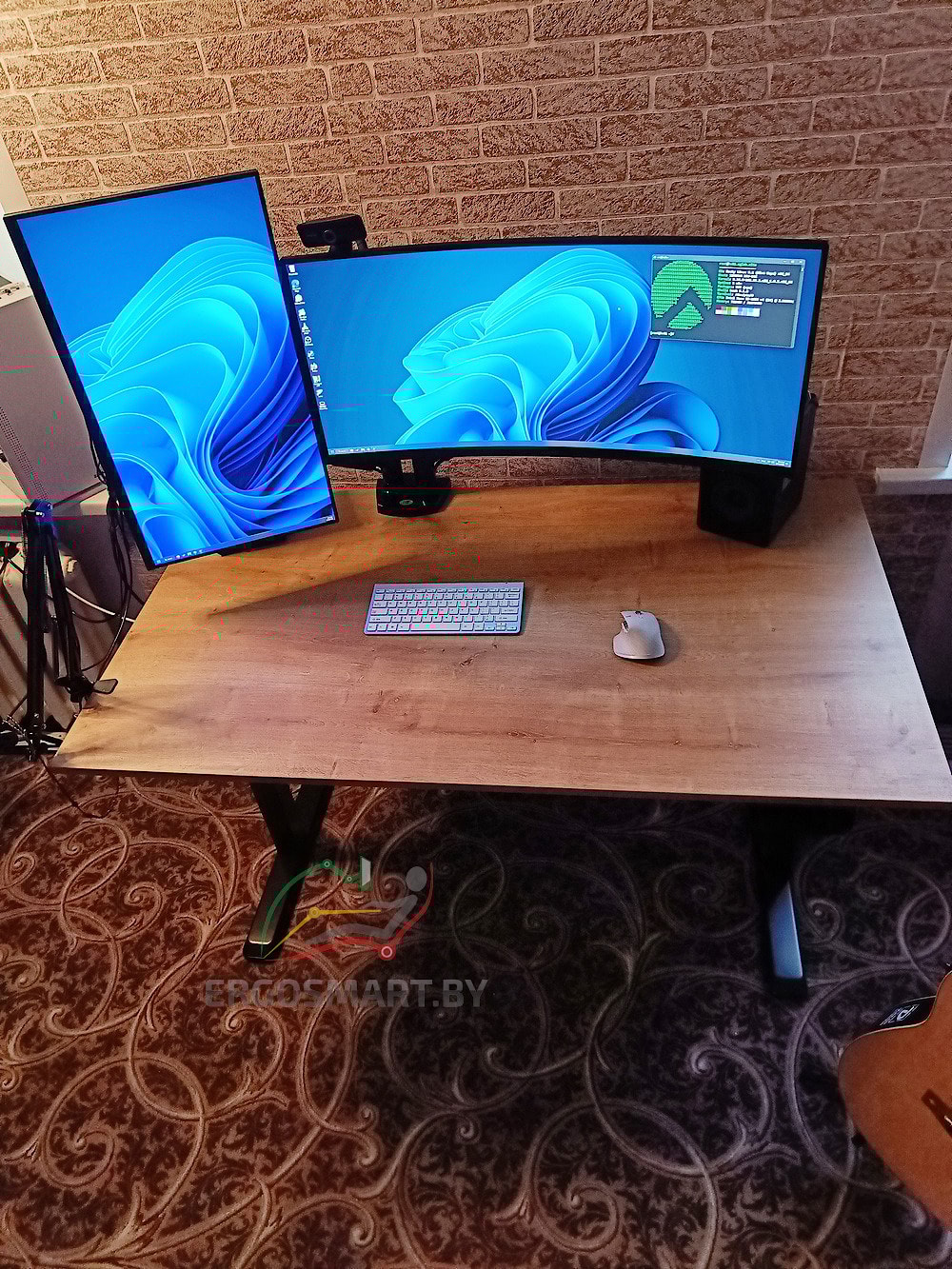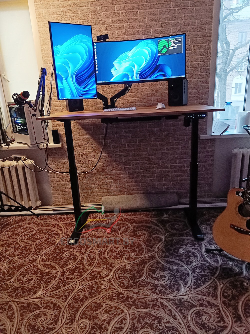 На фото: столешница из ЛДСП дуб натуральный, размер 1200х650х18мм и кронштейн для 2-х мониторов Heavy-Duty Combi.