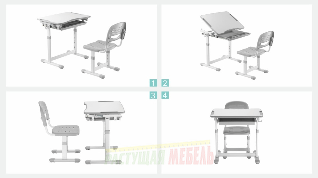 ![]() | Парта регулируется по высоте и углу наклона столешницы. |