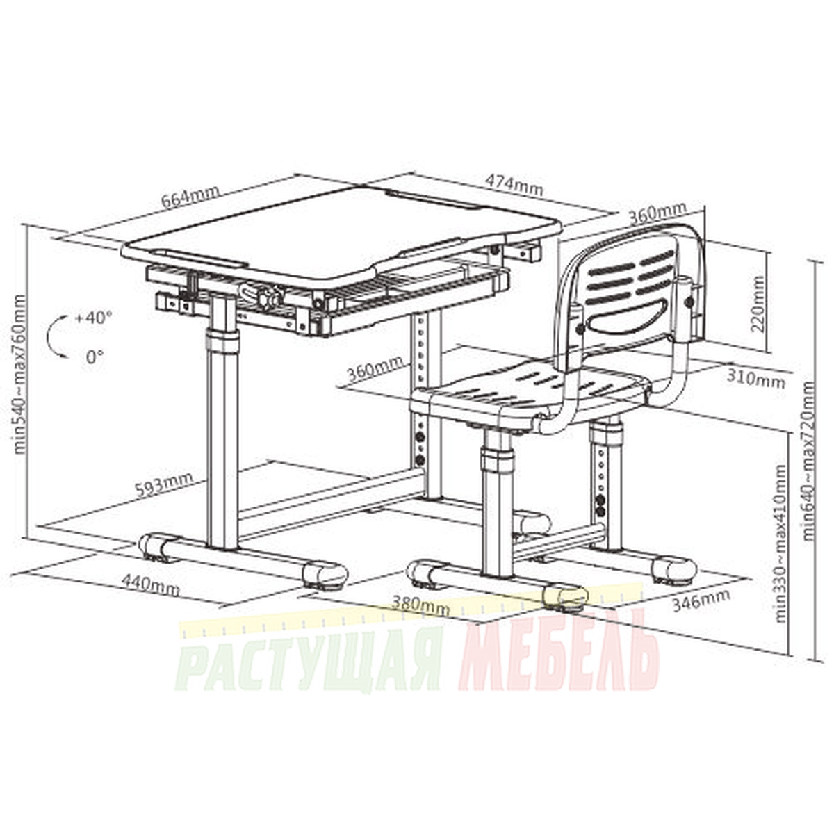 | Механизм регулировки наклона столешницы | бесступенчатый от 0° до 40° |