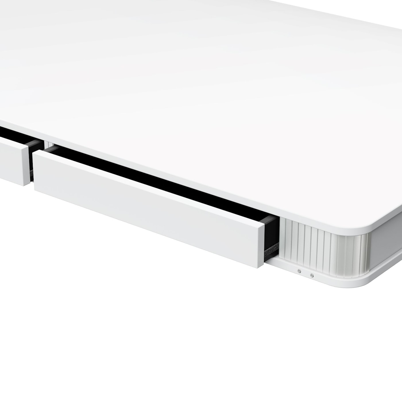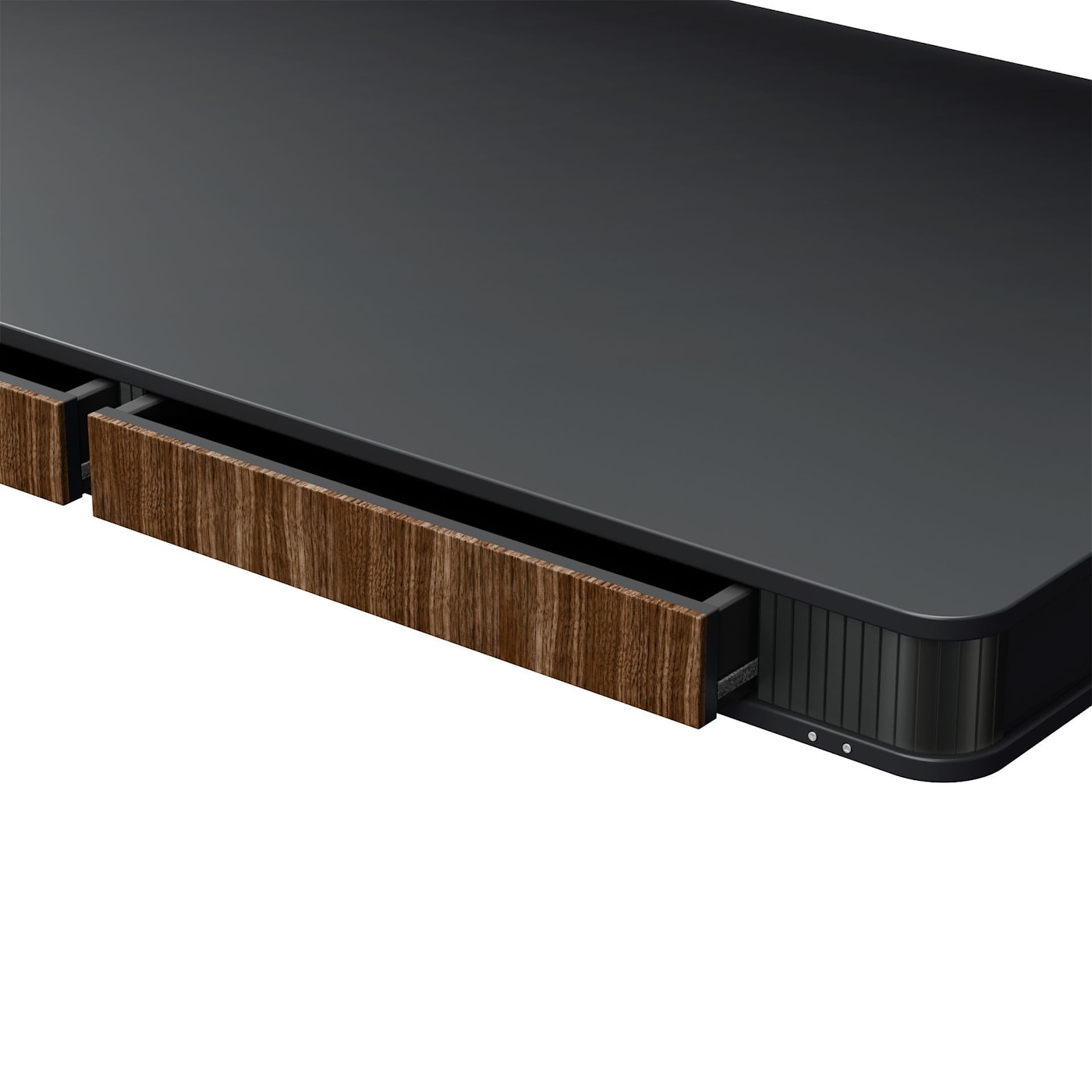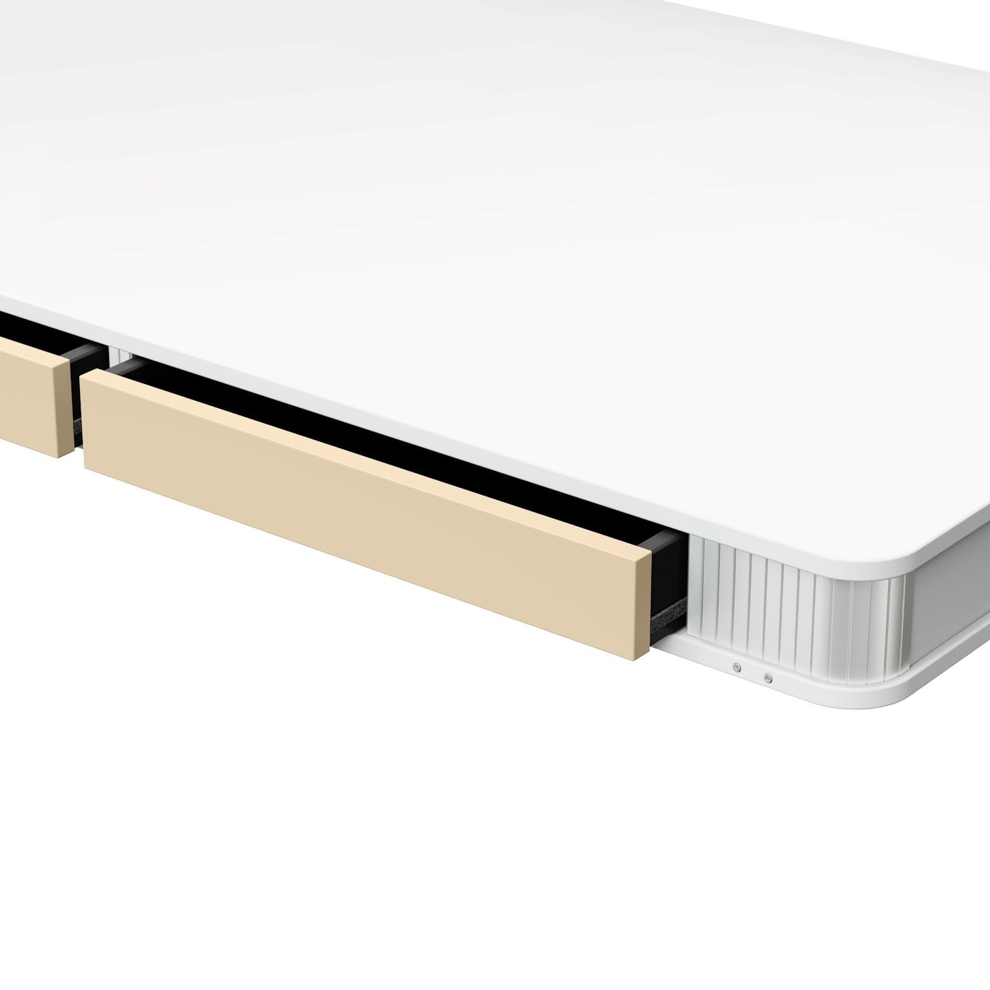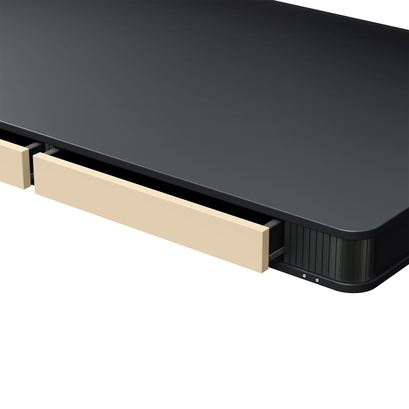 Скругленная столешница из МДФ с мягкой на ощупь поверхностью, которая отражает тепло тела и характеризуется свойствами защиты от отпечатков пальцев.
