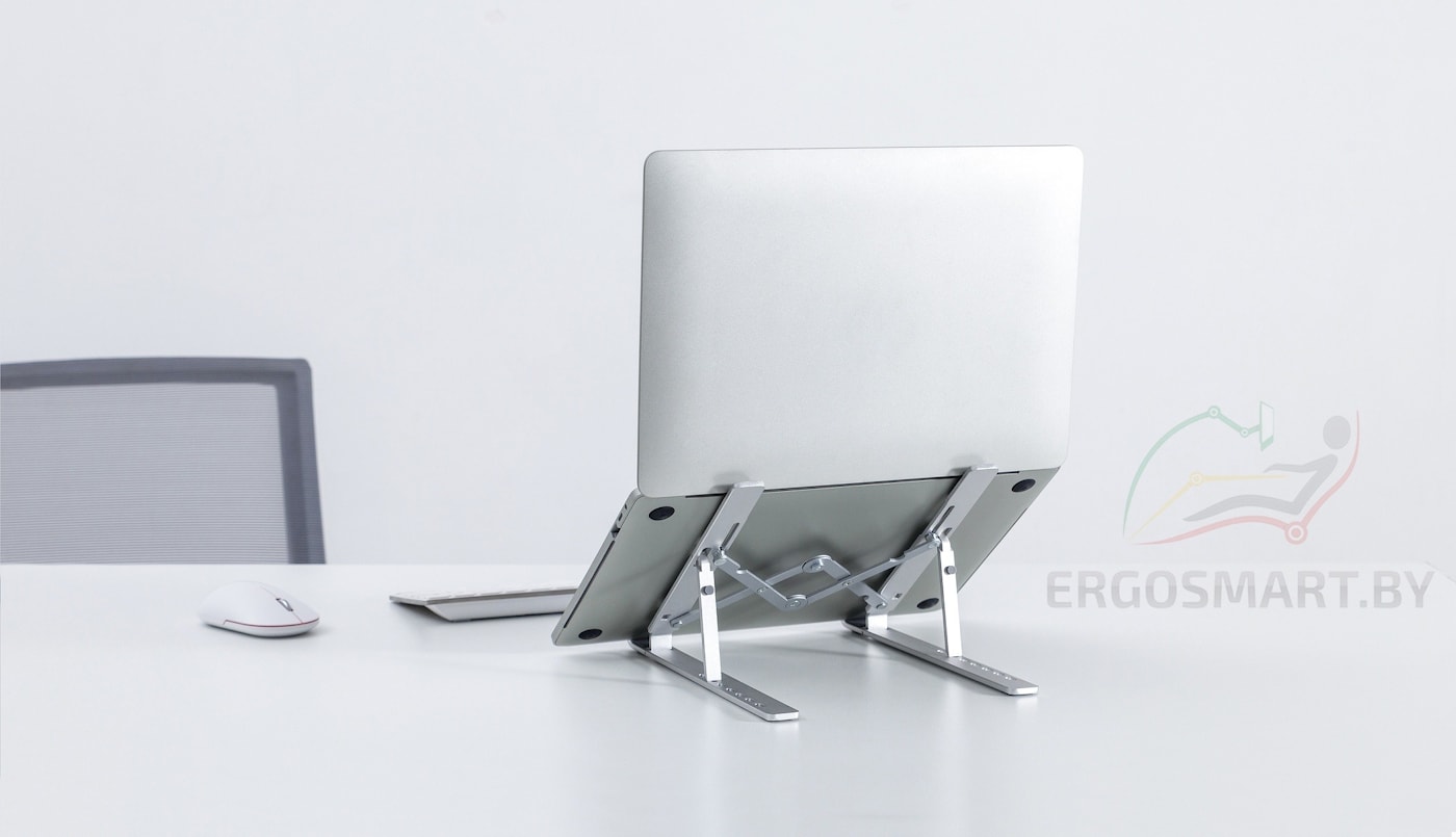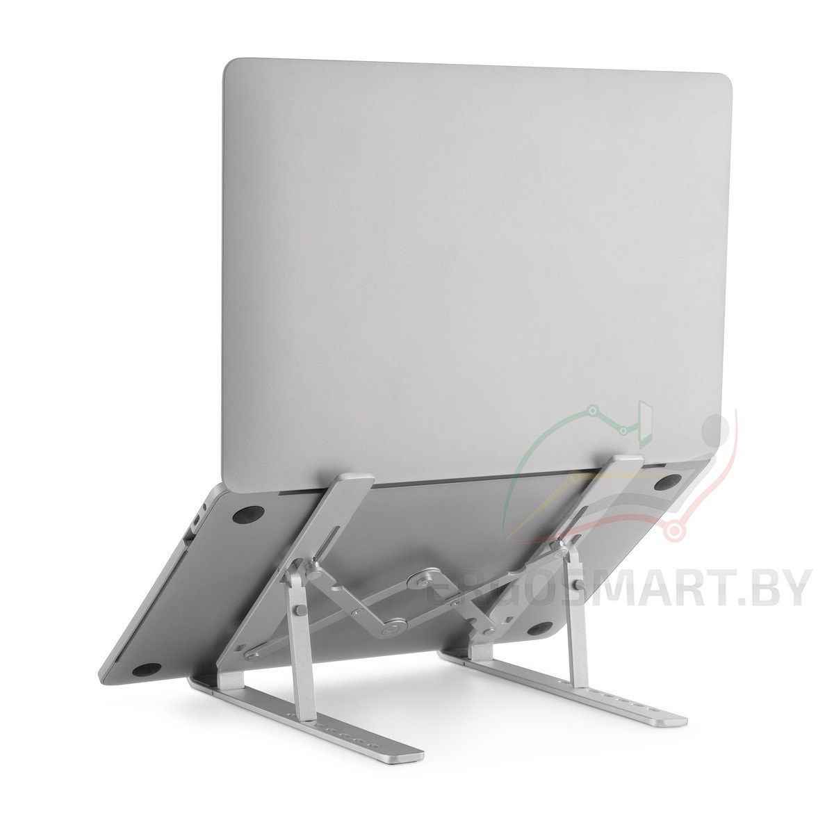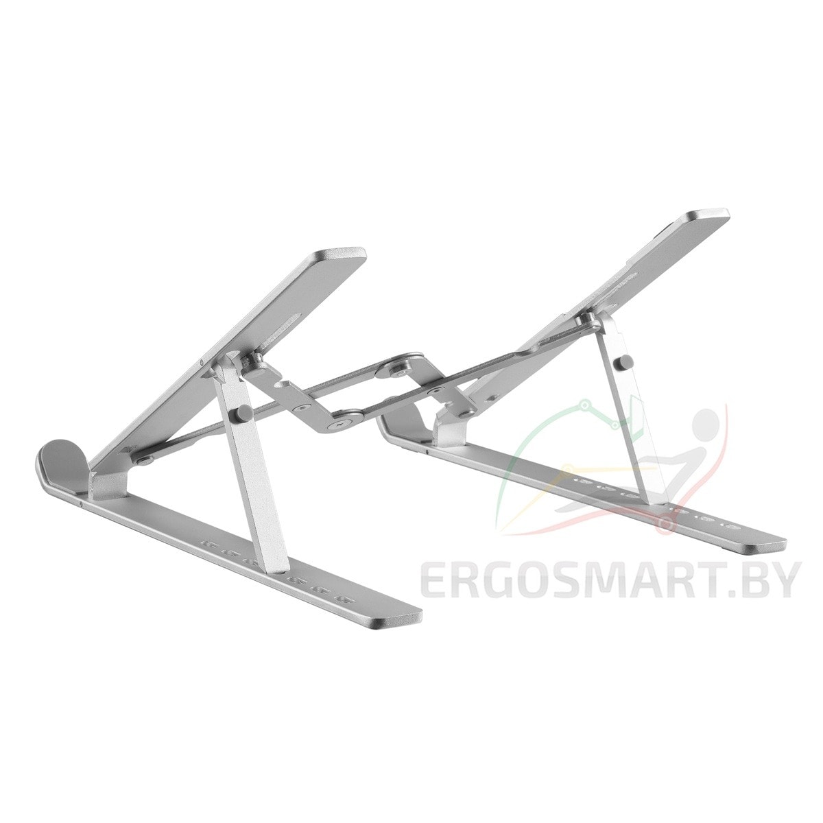 Прочная и легкая треугольная конструкция из алюминиевого сплава выдерживает нагрузку до 5 кг и подходит для ноутбуков диагональю 11"-15".